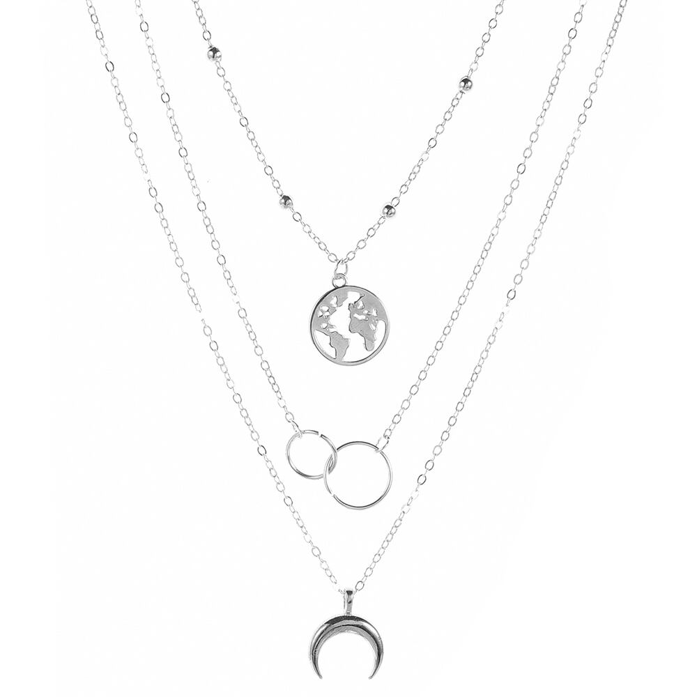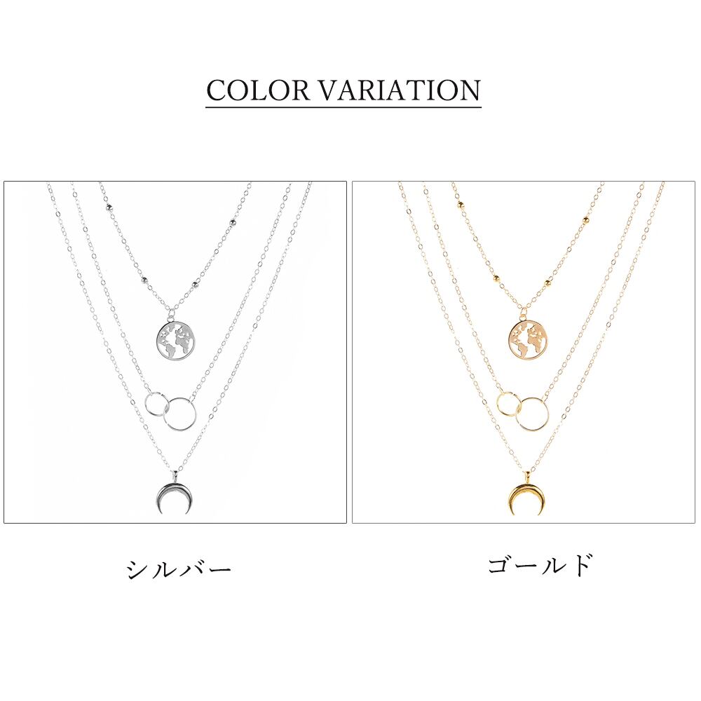 世界地図モチーフの透かしメダルとリングと月モチーフペンダントの3連ネックレスチョーカー風のデザインなので邪魔にならず、主張すぎないスタイリッシュなオトナ女子アクセサリーシンプルコーデとの相性が抜群、普段使いでもオフィシャルシーンでも、1本持っていればどんなファッションでも困らない重宝アイテムカラー:ゴールド/シルバー素材:合金襟周り:約36/45/50cmアジャスター:約5cm生産国:中国※包装に関しての注意点:こちらの商品は激 安で販売しているため、化粧箱は付いていませんが、商品に傷付かないよう簡易包装で発送とさせていただきます。※海外輸入品のため、商品の細部仕様は予告なく変更になる場合がございます。予めご了承の上、ご注文お願い致します。