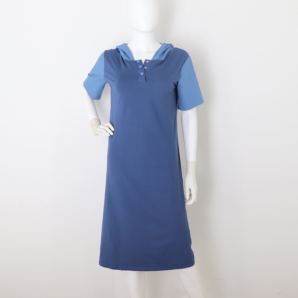 【日本倉庫即納】 Tシャツワンピース レディース ワンピ 半袖 配色 体型カバー フート付き