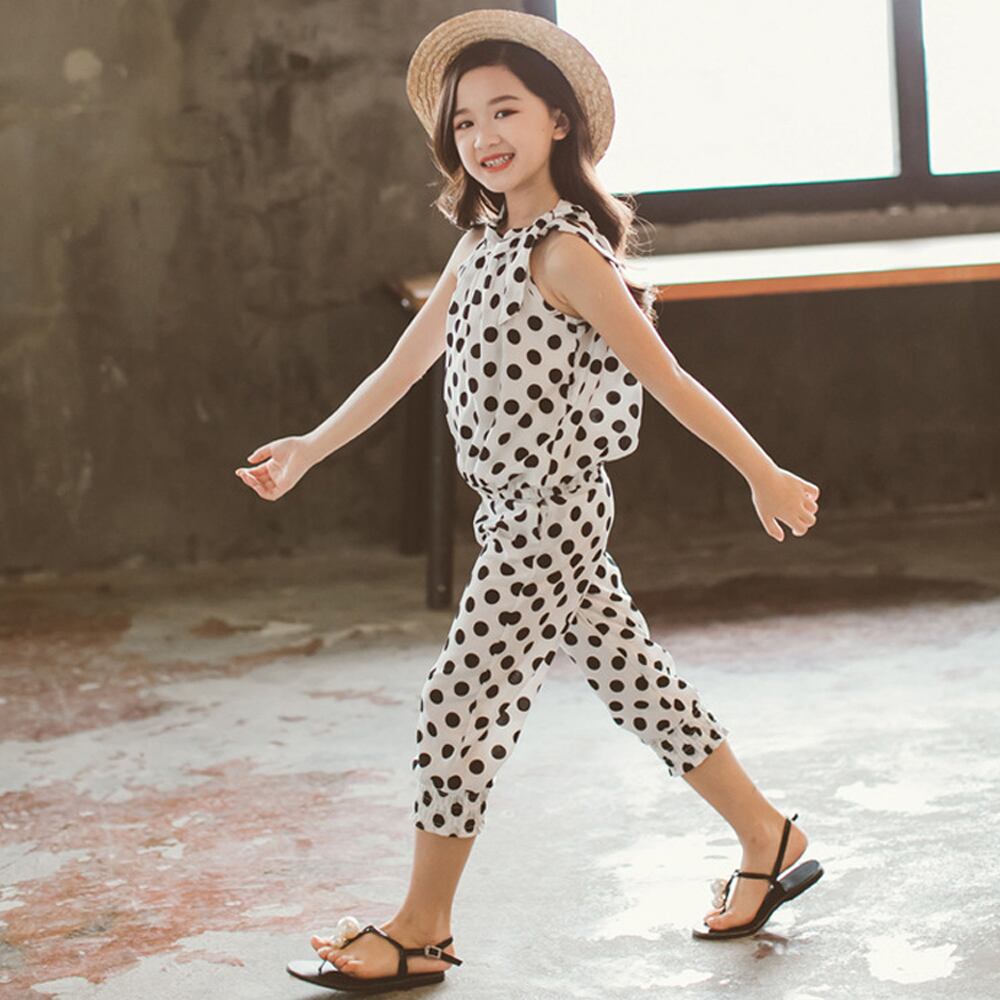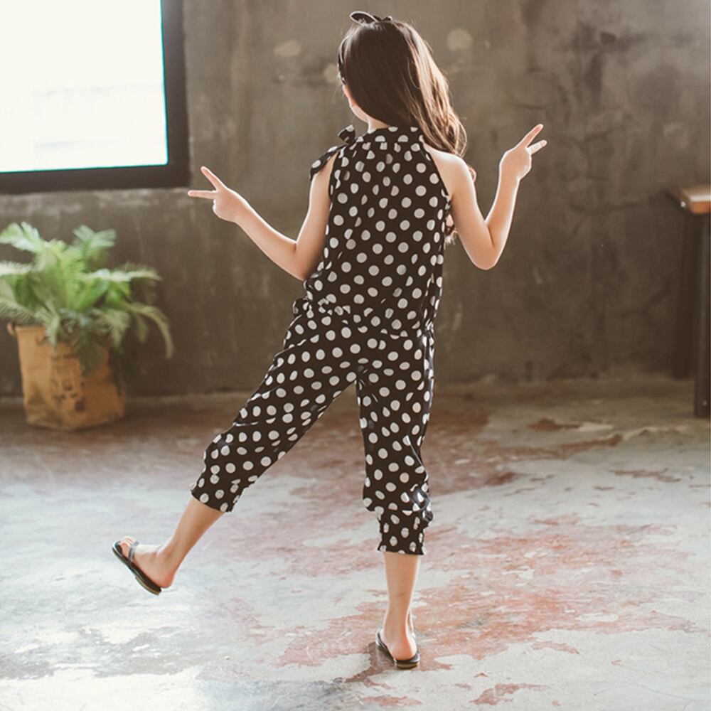 韓国風の女の子ドット柄シフォン上下2点セット。オールインワンに見えるけど,実はセットアップです♪大人っぽい雰囲気の肩出しトップス♪カラー:ブラック/ホワイト素材:ポリエステ100%詳細は下記の「サイズ」を必ずご参考にしてご購入ください。サイズ:110/120/130/140/150【トップス】[120]前丈:約38cm 後丈:約44cm 胸囲:約66cm 推奨身長:105cm-115cm[130]前丈:約41cm 後丈:約45cm 胸囲:約72cm 推奨身長:115cm-125cm[140]前丈:約42cm 後丈:約46cm 胸囲:約74cm 推奨身長:125cm-135cm[150]前丈:約47cm 後丈:約51cm 胸囲:約80cm 推奨身長:135cm-145cm[160]前丈:約49cm 後丈:約55cm 胸囲:約84cm 推奨身長:145cm-155cm【ボトムス】[120]着丈:約62cm ウエスト(ゴム仕様):約42-52cm ヒップ:約36cm[130]着丈:約65cm ウエスト(ゴム仕様):約44-54cm ヒップ:約37cm[140]着丈:約71cm ウエスト(ゴム仕様):約46-56cm ヒップ:約39cm[150]着丈:約76cm ウエスト(ゴム仕様):約48-58cm ヒップ:約43cm[160]着丈:約80cm ウエスト(ゴム仕様):約50-60cm ヒップ:約45cm裏地:なし伸縮性:なし透け感:トップスややあり/ボトムスややあり生産国:中国※すべて平置きサイズです(採寸方法違いより、多少の誤差がございますので、ご了承ください)。海外輸入品のため、商品の細部仕様は予告なく変更になる場合がございます。予めご了承の上、ご注文お願い致します。