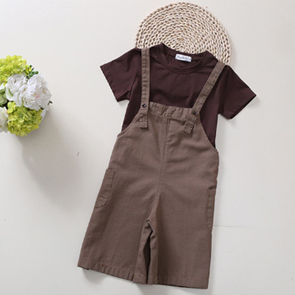 半袖Tシャツ+カジュアルなオーバーオールの子供服2点セットショルダーストラップは長さの微調節が可能♪Tシャツとオーバーオールを合わせて着ても別々にも着られます♪カラー:画像参照素材:ポリエステル65%/コットン35%※詳細は下記の「サイズ」を必ずご参考にしてご購入ください。サイズ:120/130/140/150【サイズ情報 トップス】[120]着丈:約46cm 肩幅:約30cm ゆき:約25cm 胸囲:約64cm[130]着丈:約49cm 肩幅:約30cm ゆき:約26cm 胸囲:約66cm[140]着丈:約52cm 肩幅:約31cm ゆき:約27cm 胸囲:約70cm[150]着丈:約53cm 肩幅:約34cm ゆき:約30cm 胸囲:約74cm【サイズ情報 ボトムス】[120]着丈(肩から):約61-64cm ウエスト:約74cm 股下:約13cm もも周り:約48cm[130]着丈(肩から):約64-68cm ウエスト:約78cm 股下:約14cm もも周り:約52cm[140]着丈(肩から):約68-72cm ウエスト:約82cm 股下:約16cm もも周り:約54cm[150]着丈(肩から):約73-76cm ウエスト:約86cm 股下:約17cm もも周り:約56cm裏地:なし伸縮性:トップスややあり/ボトムスなし透け感:なし生産国:中国※すべて平置きサイズです(採寸方法違いより、多少の誤差がございますので、ご了承ください)。※海外輸入品のため、商品の細部仕様は予告なく変更になる場合がございます。予めご了承の上、ご注文お願い致します。