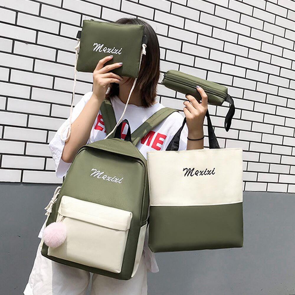 飽きのこないシンプルなバイカラーのデザインで幅広い年齢の方に愛用して頂けるバッグですバッグ4点セットで、リュック、トートバッグ、ショルダー、ペンケースが含まれます。必要によって適切なバッグを選ぶことができます。小学生から高校生の通学・習い事・旅行・通塾に最適な大容量のリュックサック。大人まで使えるデイバッグです上質なズック素材を採用しており、手触りがよく、耐久性もよいです。カラー:ブラック/イエロー/ピンク/カーキ素材:ズックサイズ:リュックサック高さ:約37cm 底横幅:約31cm マチ:約13cm 持ち手:約15cm ショルダー:約42-75cmトートバッグ高さ:約30cm 底横幅:約27cm マチ:約4.5cm 持ち手:約36cmショルダーバッグ高さ:約15.5cm 底横幅:約21cm ショルダー:約121cmペンケース縦:約4.5cm 横:約18.5cm 幅:約4cm重さ:約600g裏地:リュックサックあり内ポケット:リュックサックあり生産国:中国※すべて平置きサイズです(採寸方法違いより、多少の誤差がございますので、ご了承ください)。※海外輸入品のため、商品の細部仕様は予告なく変更になる場合がございます。予めご了承の上、ご注文お願い致します。