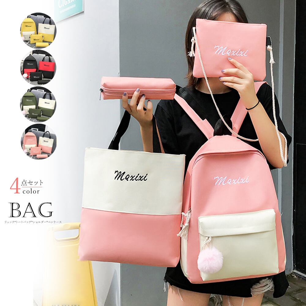【日本倉庫即納】 バッグ4点セット レディース 通勤 通学 リュックサック ペンケース 軽量