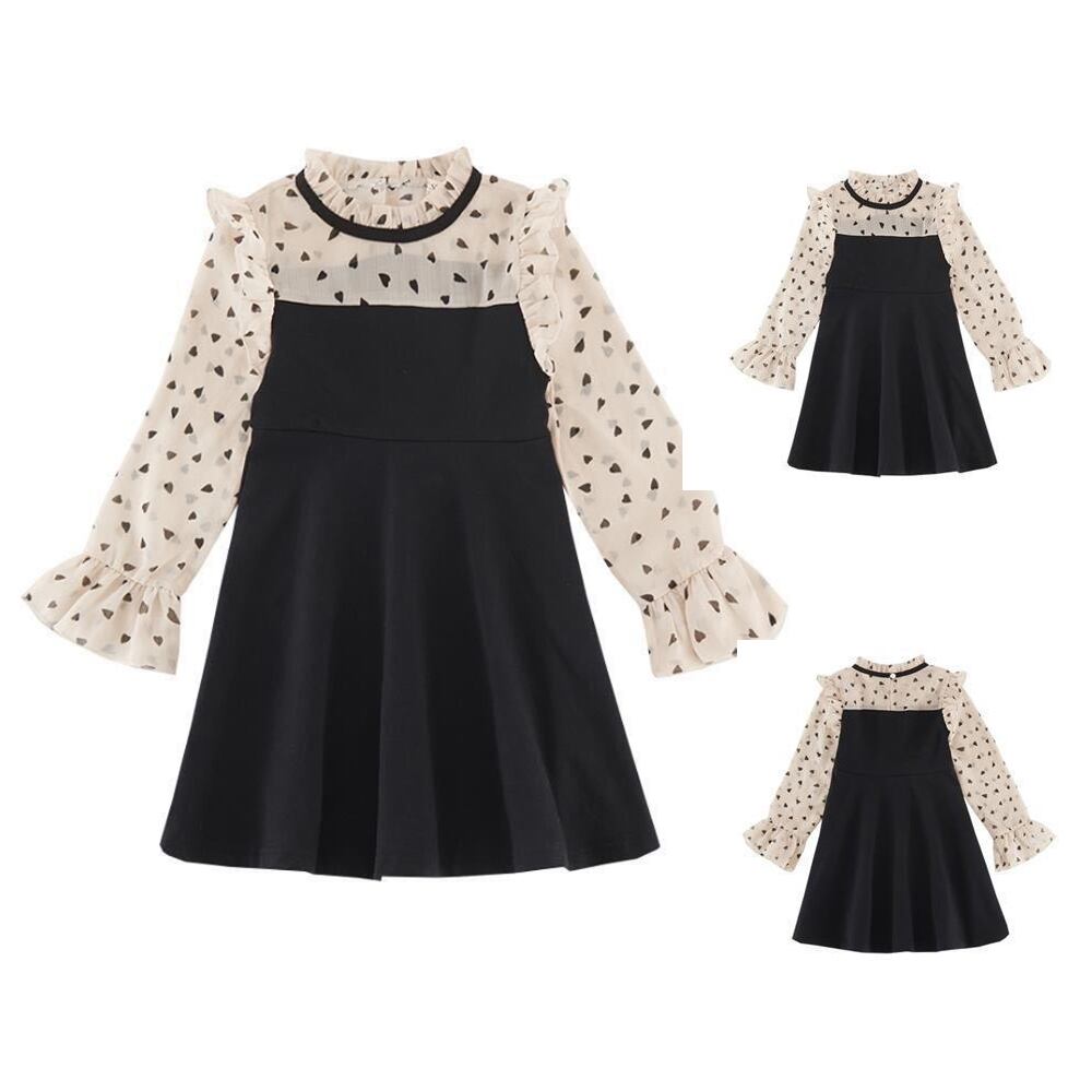 一瞬ですぐに外出できちゃうドッキングワンピース。小さなハート柄が可愛らしい印象です。通学、普段着にピッタリな1着です。素材:綿65%+ポリエステル35%カラー:ブラック※詳細は下記の「サイズ」を必ずご参考にしてご購入ください。サイズ:120/130/140/150/160[120]総丈:約61cm 袖丈:約39cm 胸囲:約58cm ウエスト:約54cm おすすめ身長:約110cm[130]総丈:約66cm 袖丈:約43cm 胸囲:約62cm ウエスト:約58cm おすすめ身長:約120cm[140]総丈:約69cm 袖丈:約43cm 胸囲:約64cm ウエスト:約62cm おすすめ身長:約130cm[150]総丈:約74cm 袖丈:約45cm 胸囲:約68cm ウエスト:約64cm おすすめ身長:約140cm[160]総丈:約79cm 袖丈:約50cm 胸囲:約70cm ウエスト:約66cm おすすめ身長:約150cm裏地:なし伸縮性:なし透け感:あり生産国:中国※すべて平置きサイズです(採寸方法違いより、多少の誤差がございますので、ご了承ください)。※海外輸入品のため、商品の細部仕様は予告なく変更になる場合がございます。予めご了承の上、ご注文お願い致します。