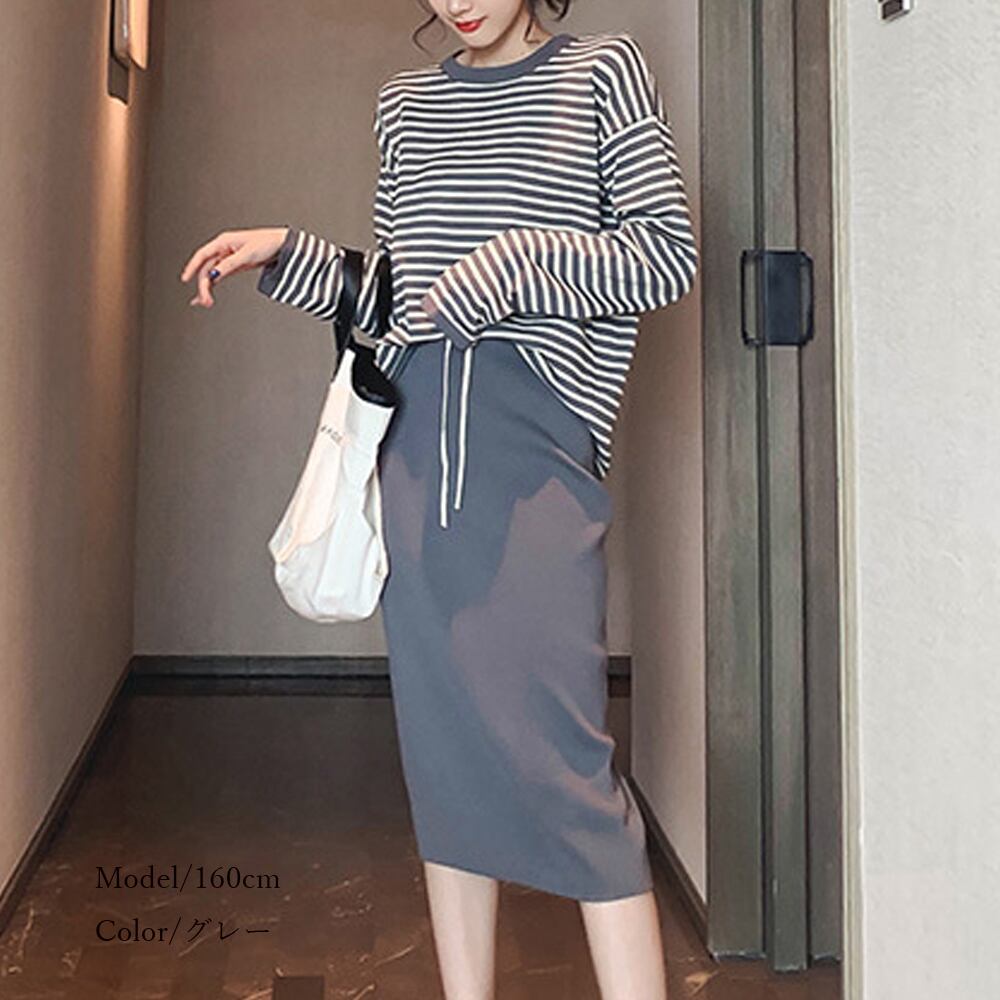 【日本倉庫即納】 セットアップ レディース ボーダー Tシャツ タイトスカート 上下セット