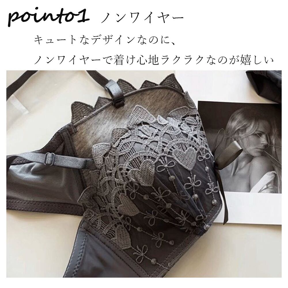【日本倉庫即納】 ハートレースブラ ノンワイヤー リボン ブラジャーショーツセット 盛れるブラ