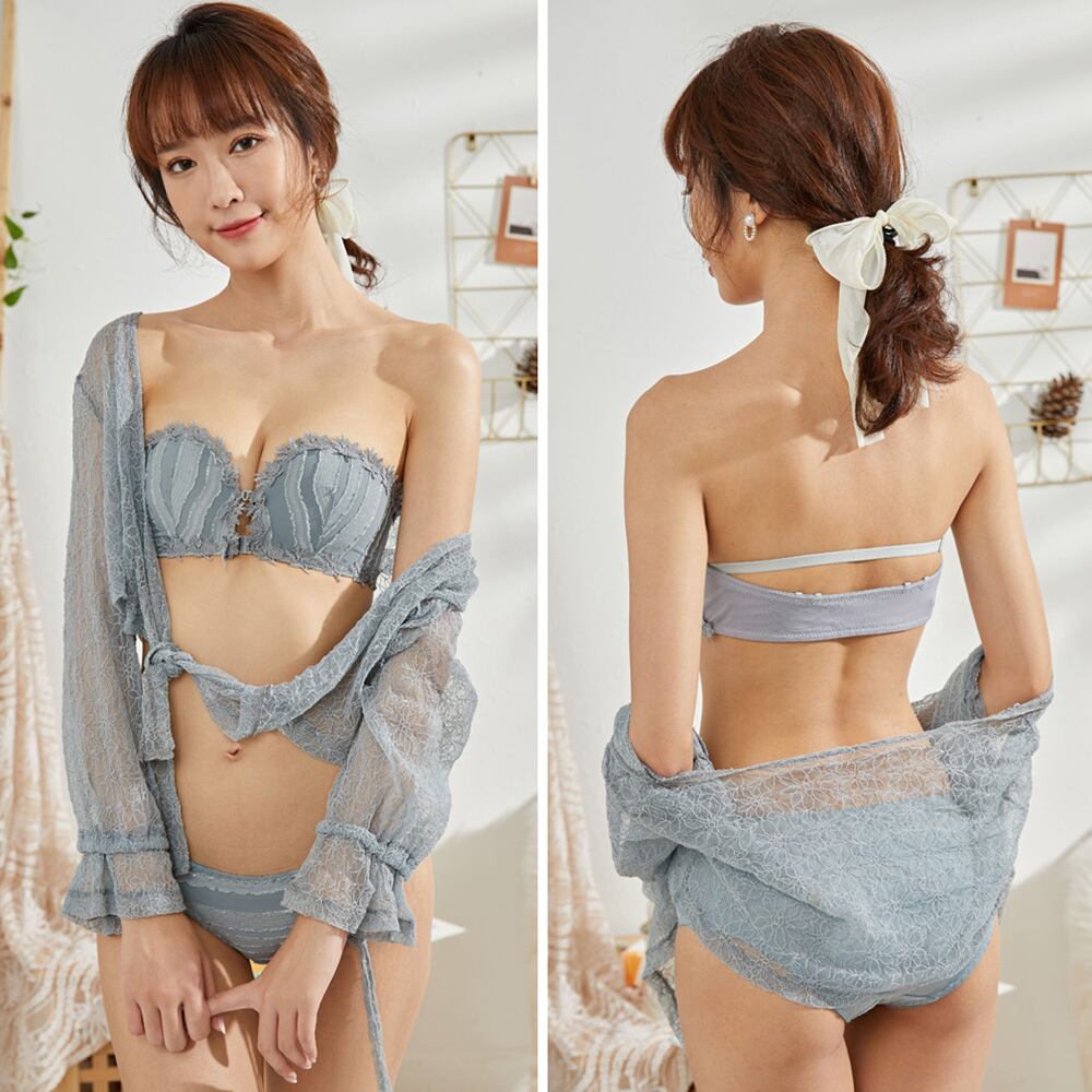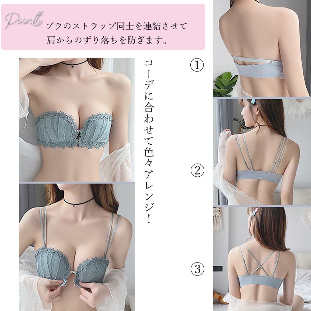 フロントホックだから、前も後ろもスッキリで肌見せにピッタリのブラジャーショーツセットストラップレスにしても、サポートストラップがあるのでピッタリ快適に着用できるショーツはシンプルデザインにエレガントなノーマル仕様、セクシーでもヘルシーな上品さがplusされて甘さを抑えてシックな雰囲気素材:ナイロン80%+ポリウレタン20%カラー:ブラック/ピンク/スモーキーブルー●ブラジャーサイズ[S]32/70 70AB トップバスト:約66cm アンダーバスト:約60cm[M]34/75 75AB トップバスト:約68cm アンダーバスト:約62cm[L]36/80 80AB トップバスト:約70cm アンダーバスト:約64cm[XL]38/85 85AB トップバスト:約72cm アンダーバスト:約66cmショーツサイズ:股上:約17.5cm ウエスト:約56-80cm ヒップ:約60cm※ショーツは全カラー・全サイズ共通のワンサイズ仕様です。●仕様3/4カップ、フロントホック、肩紐取外し可、ワイヤー:なし●効果谷間づくり、ボリュームUP補正機能:なしワイヤー:なしカップ:あり裏地:なし伸縮性:あり透け感:なし生産国:中国※すべて平置きサイズです(採寸方法違いより、多少の誤差がございますので、ご了承ください)。※海外輸入品のため、商品の細部仕様は予告なく変更になる場合がございます。予めご了承の上、ご注文お願い致します。