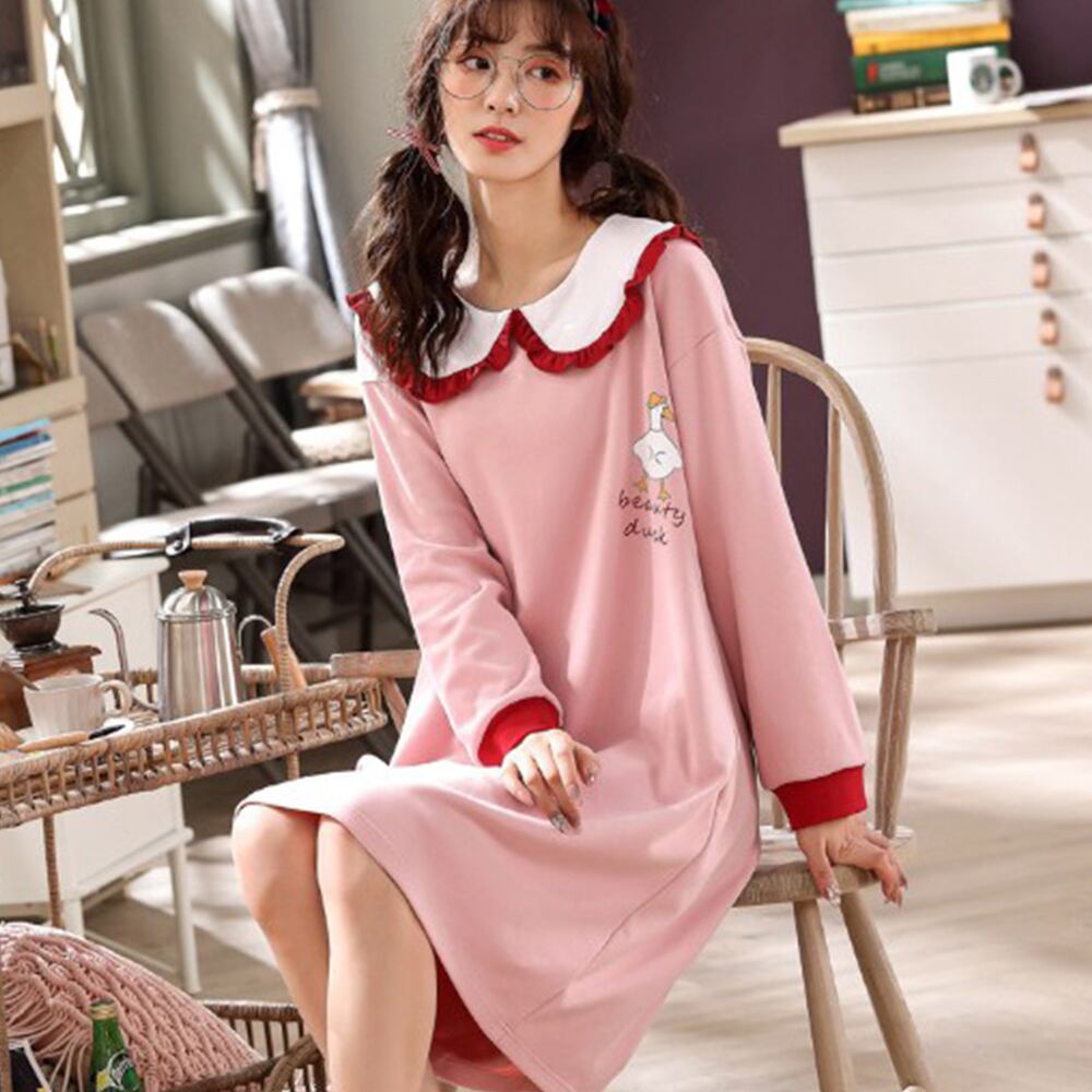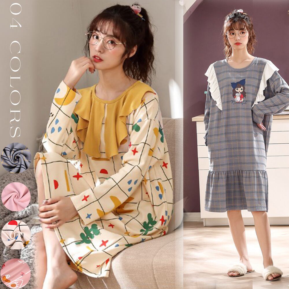 【日本倉庫即納】 ワンピースパジャマ レディース ゆったり ルームウェア お洒落 ロング丈ワンピ