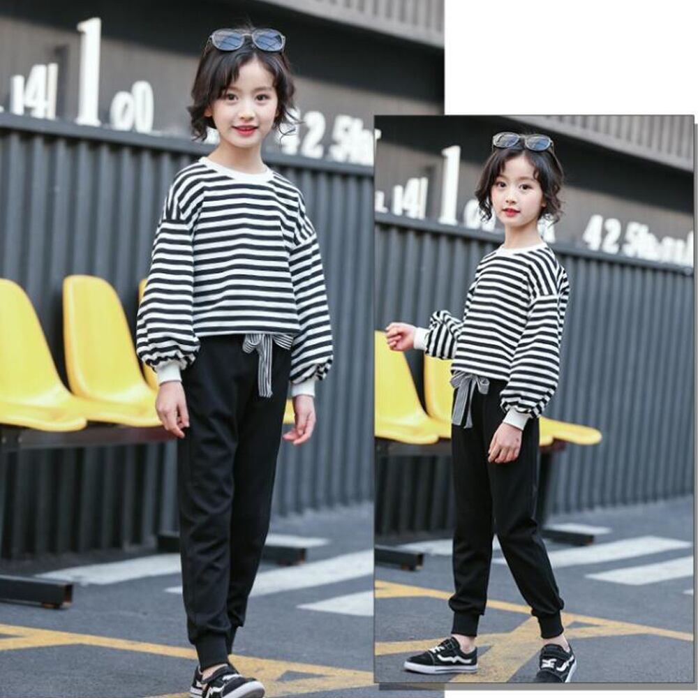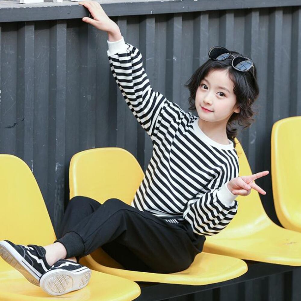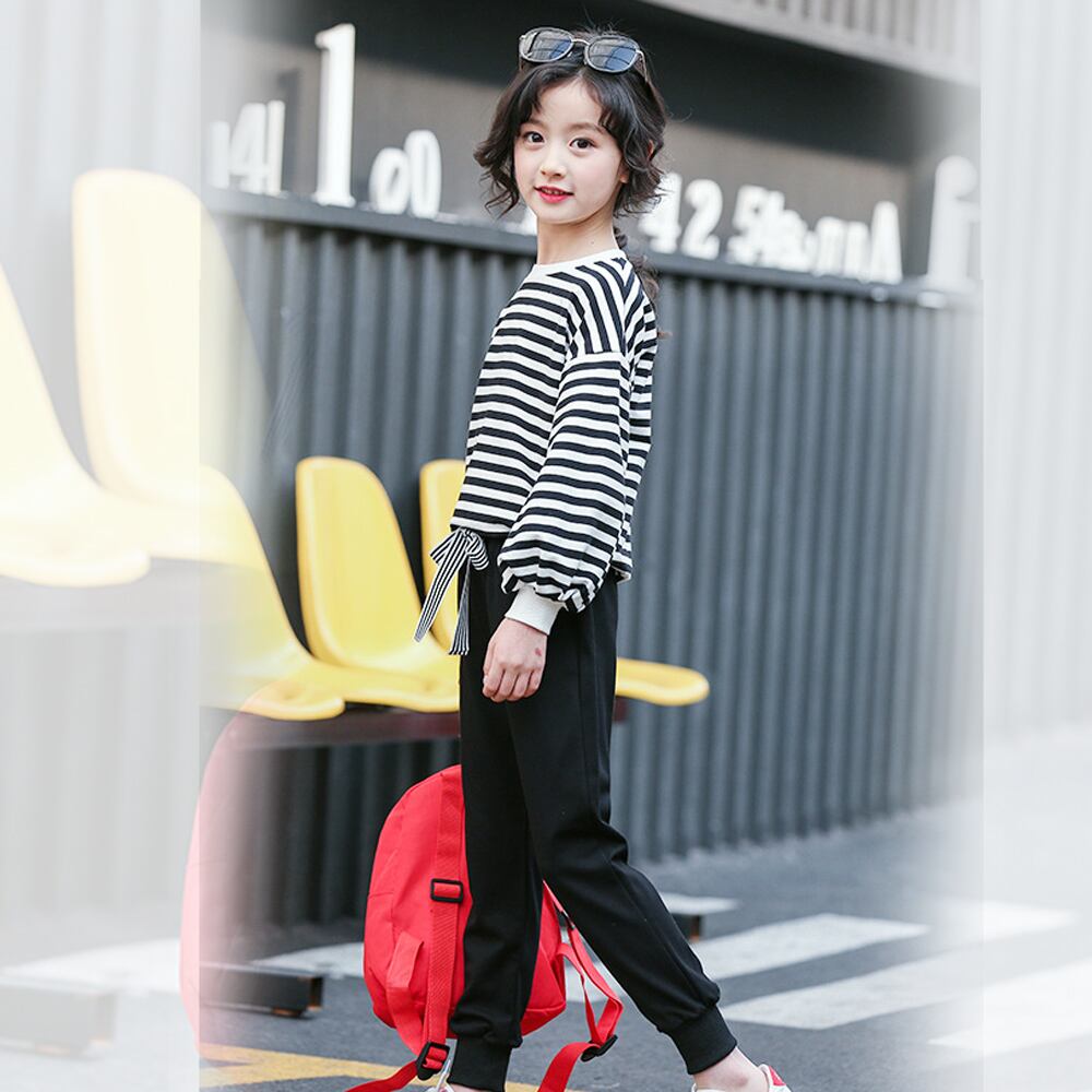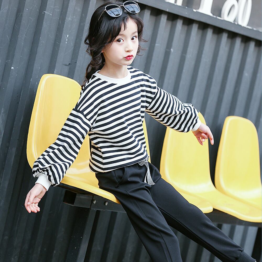 ガールズ長袖カジュアルファッション上下2点セット。シンプルな定番デザインでウエストはゴムになっているのでお着替えも楽ちん♪日常からお出かけまで使える、一枚でおしゃれにきまるアイテムです♪素材:綿65%+ポリエステル35%カラー:ボーダー詳細は下記の「サイズ」を必ずご参考にしてご購入ください。サイズ:120/130/140/150/160【トップス】[120]着丈:約?45cm 肩幅:約45cm 袖丈:約33cm 胸囲:約78cm[130]着丈:約47cm 肩幅:約44cm 袖丈:約34cm 胸囲:約80cm[140]着丈:約50cm 肩幅:約47cm 袖丈:約37cm 胸囲:約84cm[150]着丈:約53cm 肩幅:約49cm 袖丈:約40cm 胸囲:約86cm[160]着丈:約57cm 肩幅:約51cm 袖丈:約42cm 胸囲:約92cm【ボトムス】[120]着丈:約59cm ウエスト(ゴム仕様):約38-50cm ヒップ:約38cm 股下:約40cm もも周り:約36cm[130]着丈:約69cm ウエスト(ゴム仕様):約44-56cm ヒップ:約39cm 股下:約47cm もも周り:約42cm[140]着丈:約74cm ウエスト(ゴム仕様):約44-58cm ヒップ:約43cm 股下:約51cm もも周り:約46cm[150]着丈:約80cm ウエスト(ゴム仕様):約46-62cm ヒップ:約44cm 股下:約55cm もも周り:約46cm[160]着丈:約84cm ウエスト(ゴム仕様):約52-70cm ヒップ:約47cm 股下:約59cm もも周り:約48cm裏地:なし伸縮性:ややあり透け感:なし生産国:中国※すべて平置きサイズです(採寸方法違いより、多少の誤差がございますので、ご了承ください)。海外輸入品のため、商品の細部仕様は予告なく変更になる場合がございます。予めご了承の上、ご注文お願い致します。