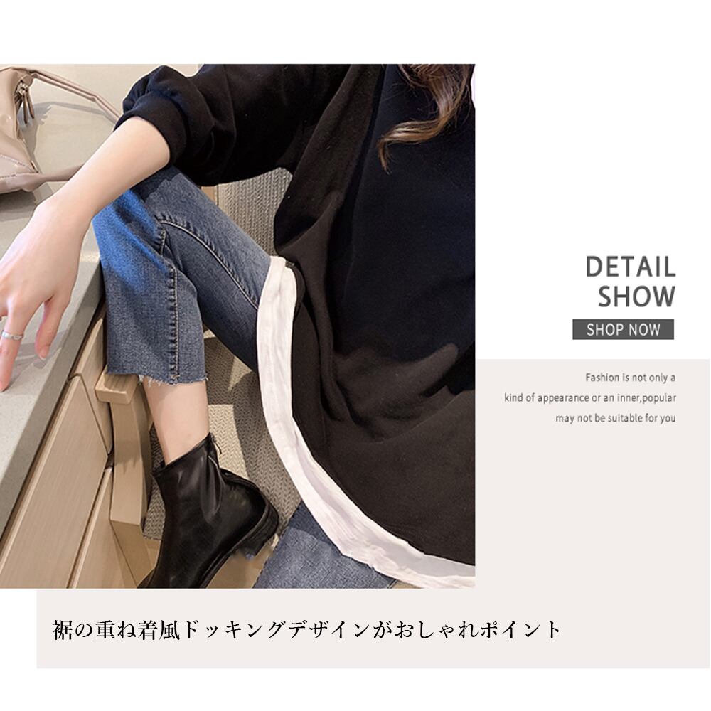 【日本倉庫即納】 レイヤード風 トレーナー レディース ゆったり ラウンドネック スウェット