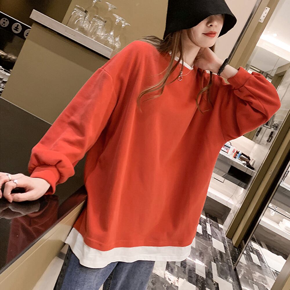 トレーナーにシャツをレイヤードしたような重ね着風のトップス重ね着風加工になっており、モノトーンコーデを引き立てます。程よくきちんと感が演出できて大人女子にはぴったり。長めの着丈なので細身のボトムや、レギンスで合わせてラフコーデもおすすめ素材:ポリエステル70%+綿30%カラー:ブラック/なんどいろ/オレンジレッドサイズ:L/XL/XXL[L]着丈:約68cm 肩幅:約56cm 袖丈:約46cm ゆき:約74cm 身幅:約57cm 胸囲:約114-130cm[XL]着丈:約69cm 肩幅:約57cm 袖丈:約47cm ゆき:約75.5cm 身幅:約58cm 胸囲:約116-135cm[XXL]着丈:約70cm 肩幅:約58cm 袖丈:約48cm ゆき:約77cm 身幅:約60cm 胸囲:約120-140cm裏地:なし伸縮性:あり透け感:なし生産国:中国※すべて平置きサイズです(採寸方法違いより、多少の誤差がございますので、ご了承ください)。※海外輸入品のため、商品の細部仕様は予告なく変更になる場合がございます。予めご了承の上、ご注文お願い致します。