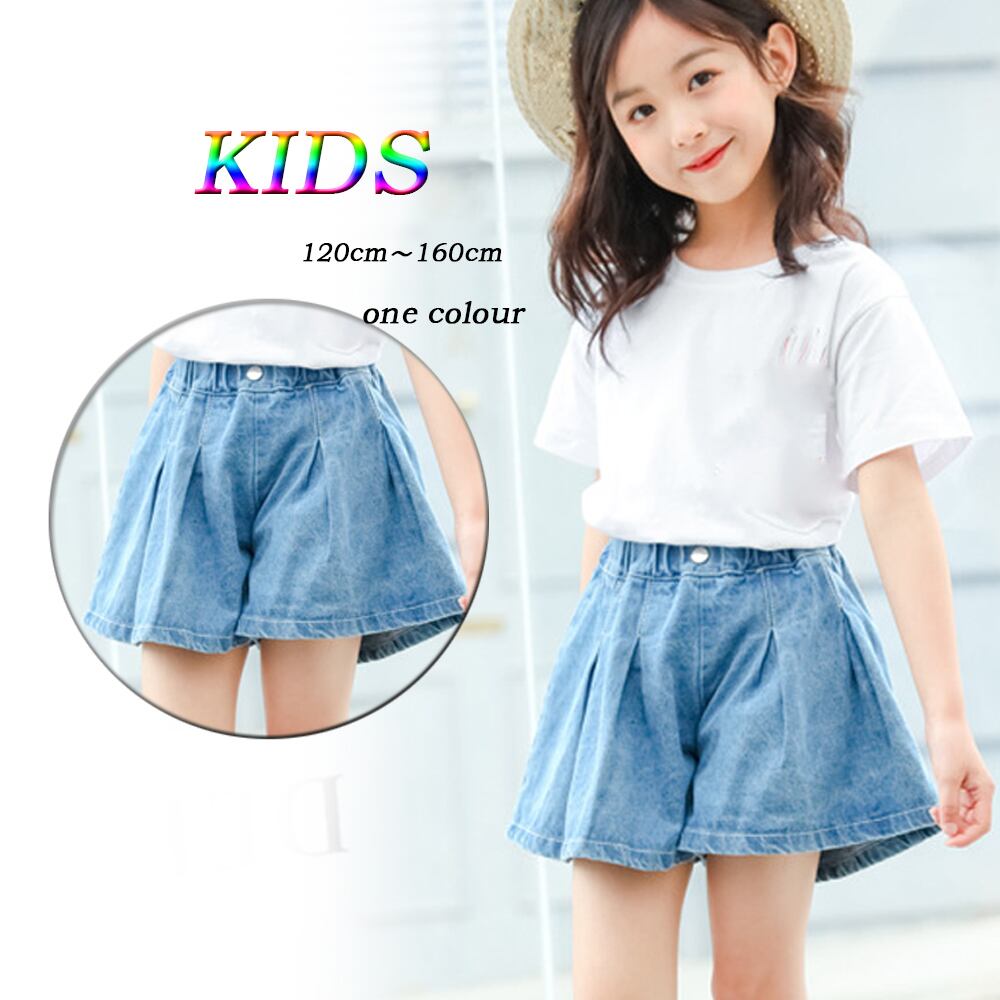 【日本倉庫即納】 子ども服 キッズ デニムショートパンツ 子供服 女の子 ジュニアサイズ