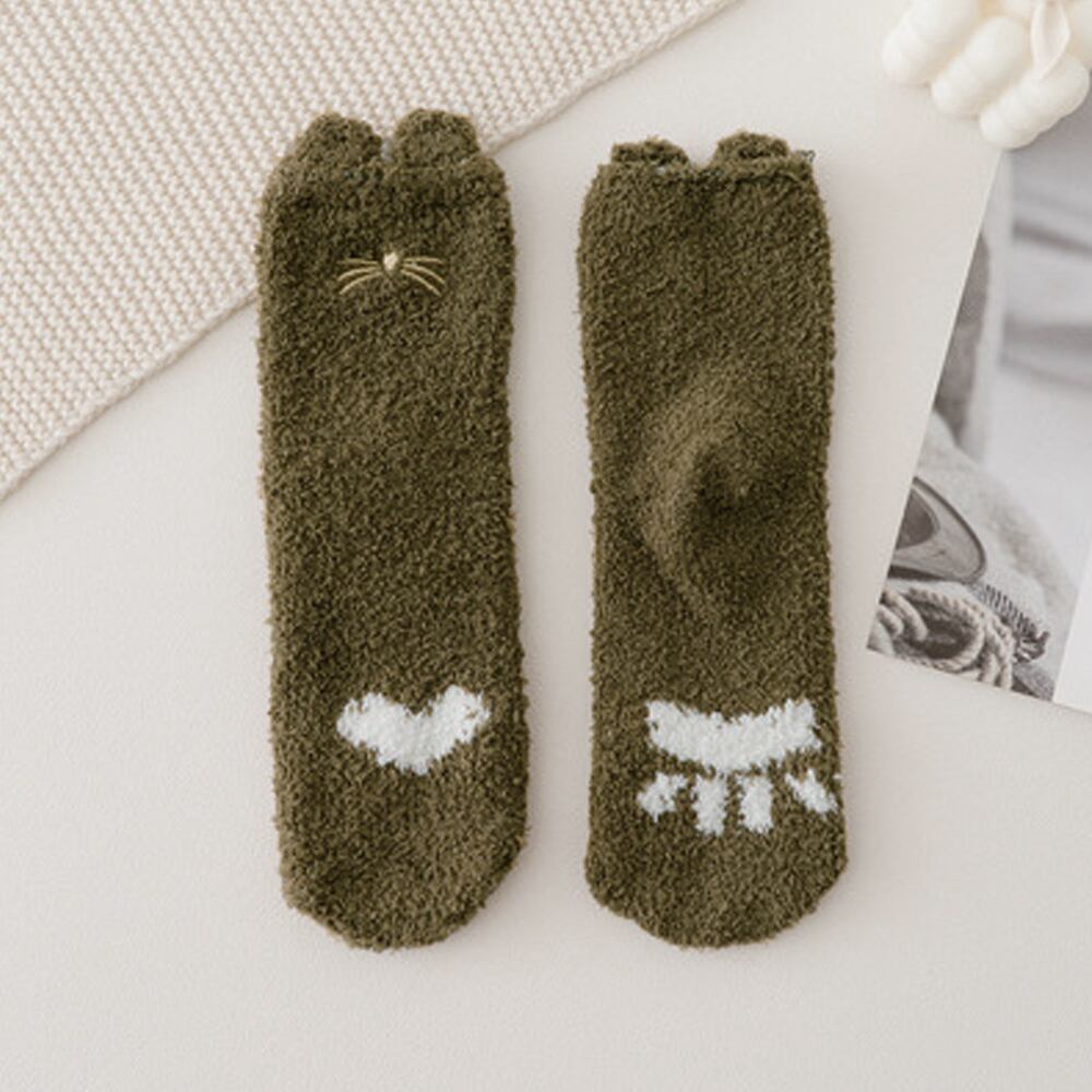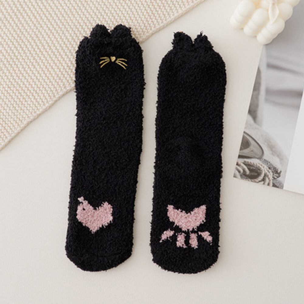【日本倉庫即納】 モコモコ ソックス レディース 暖かい 猫耳付き 靴下 室内履き ふわふわ