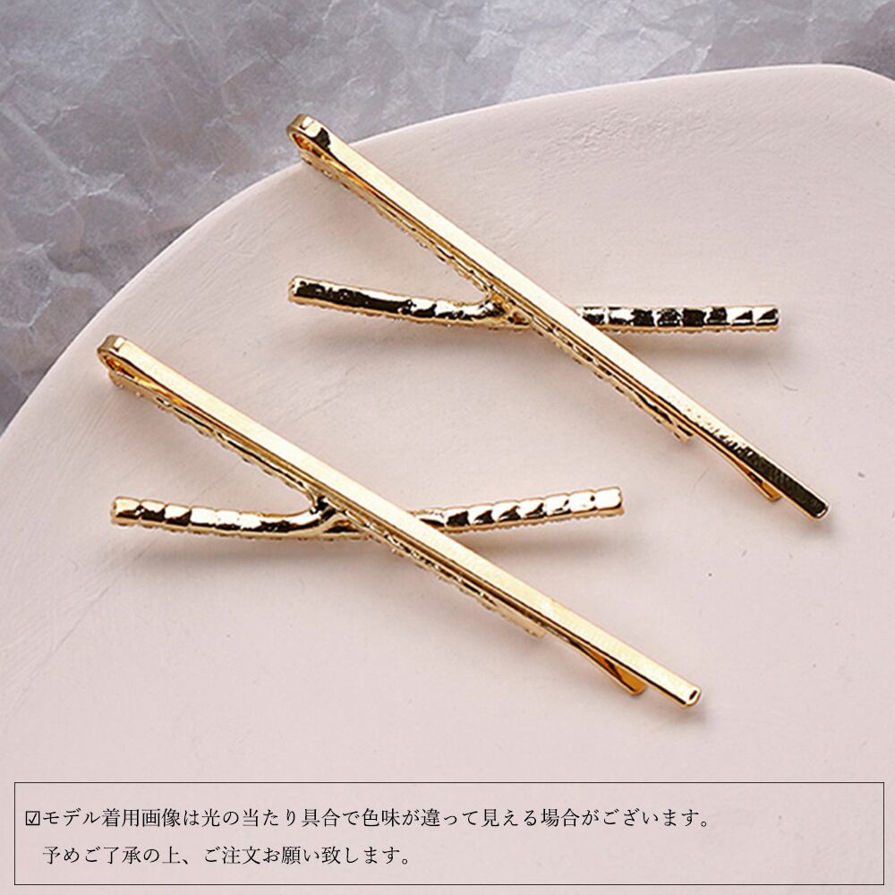 前髪など左右に付けれる様に2個セットのヘアピン大人っぽく高見えするゴールドカラーが顔まわりを華やかに飾ってくれる1本使いはもちろん、重ね付けもオススメ。デイリーやオフィス、ちょっとしたパーティーシーンでも映えるエレガントなヘアアクセサリー素材:合金+ラインストーンカラー:ゴールド長さ:約5.5cm生産国:中国※包装に関しての注意点:こちらの商品は激 安で販売しているため、化粧箱は付いていませんが、商品に傷付かないよう簡易包装で発送とさせていただきます。※海外輸入品のため、商品の細部仕様は予告なく変更になる場合がございます。予めご了承の上、ご注文お願い致します。
