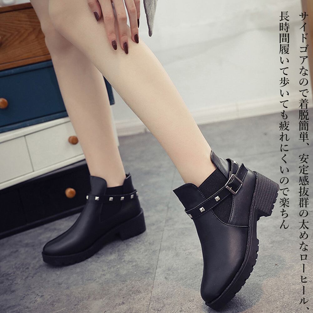 ショートブーツ レディース ローヒール ブーティ リベット付き 履きやすい 美脚ブーツ お洒落 サイドゴアブーツ 厚底疲れにくいシューズ フェイクレザー 靴 おしゃれ ブーツ足首見せで女性らしいサイドゴアとリベットベルト付きのショートブーツサイドゴアなので着脱簡単、安定感抜群の太めなローヒール、長時間履いて歩いても疲れにくいので楽ちんいろんなスカートやワンピース、パンツとあわせやすく、大活躍まちがいなしの一足甲素材:合成皮革底素材:合成底カラー:ブラックサイズ:22.5cm(35)/23.0cm(36)/23.5cm(37)/24.0cm(38)/24.5cm(39)/25.0cm(40)(カッコ内は靴底表記となります)[22.5]長さ:約22.5cm 幅:約8.1cm 筒丈:約8.0cm 履き口周り:約20cm[23.0]長さ:約23.0cm 幅:約8.3cm 筒丈:約8.0cm 履き口周り:約21cm[23.5]長さ:約23.5cm 幅:約8.5cm 筒丈:約8.5cm 履き口周り:約22cm[24.0]長さ:約23.5cm 幅:約8.7cm 筒丈:約8.5cm 履き口周り:約23cm[24.5]長さ:約23.5cm 幅:約8.9cm 筒丈:約9.0cm 履き口周り:約24cm[25.0]長さ:約23.5cm 幅:約9.1cm 筒丈:約9.0cm 履き口周り:約25cm重さ(両足):約504g-550g生産国:中国※すべて平置きサイズです(採寸方法違いより、多少の誤差がございますので、ご了承ください)。※商品は縫製上の細かいほつれ、汚れ、接着剤が残り、素材特有の臭いや接着剤等の臭いが残っている場合がございます。ご了承ください。※海外輸入品のため、商品の細部仕様は多少異なる場合がございます。予めご了承の上、ご注文お願い致します。