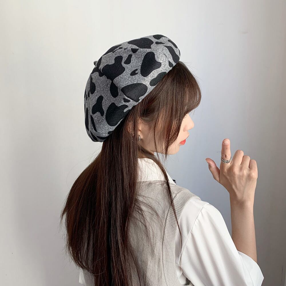【日本倉庫即納】 ベレー帽 レディース 暖かい かぼちゃベレー 大人 牛柄ぼうし おしゃれ