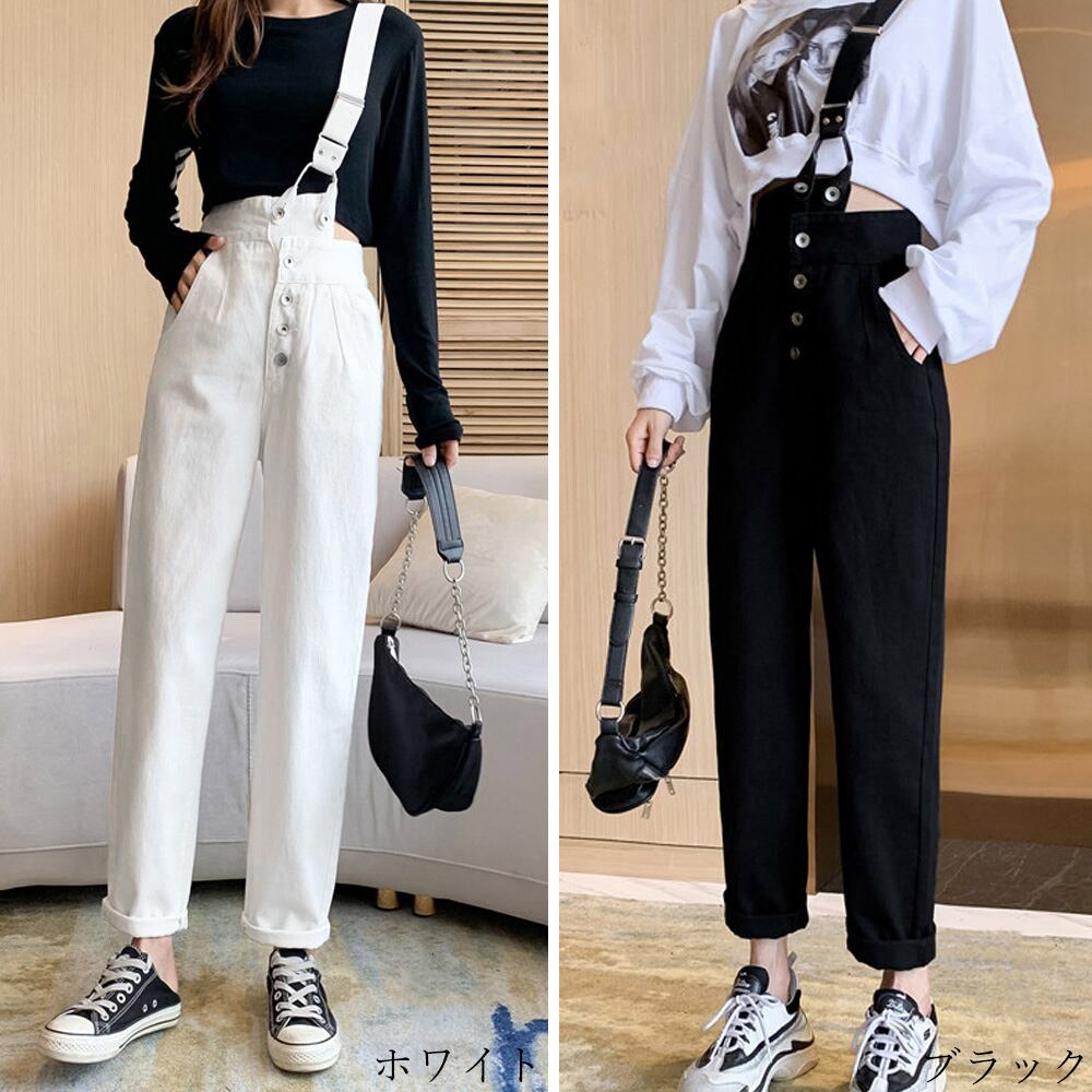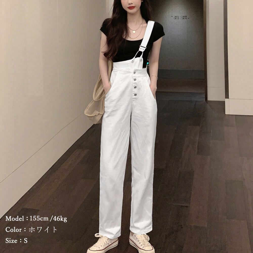 サロペット 2wayデニム ハイウエスト ジーンズ オールインワン 着やせ 韓国風 美脚 オーバーオール 大人カジュアル脚長デニムパンツ白 ストレートデニム秋 リラックス パンツ爽やかなデニムがオールシーズンコーデを明るく見せてくれるワンショルダーデニムパンツストラップは取り外しが出来るからサロペット風でも、シンプルなモノトーンジーパンとしても活躍してくれる2way仕様季節に合わせて、インナーを変えれば雰囲気もがらりと素材:綿65%+ポリエステル35%カラー:ブラック/ホワイトサイズ:S/M/L[S]着丈:約103cm 股下:約59cm ウエスト:約66cm ヒップ:約88cm もも周り:約54cm[M]着丈:約104cm 股下:約60cm ウエスト:約70cm ヒップ:約92cm もも周り:約57cm[L]着丈:約105cm 股下:約61cm ウエスト:約74cm ヒップ:約98cm もも周り:約60cm裏地:なし伸縮性:なし透け感:なし生産国:中国※すべて平置きサイズです(採寸方法違いより、多少の誤差がございますので、ご了承ください)。※海外輸入品のため、商品の細部仕様は多少異なる場合がございます。予めご了承の上、ご注文お願い致します。