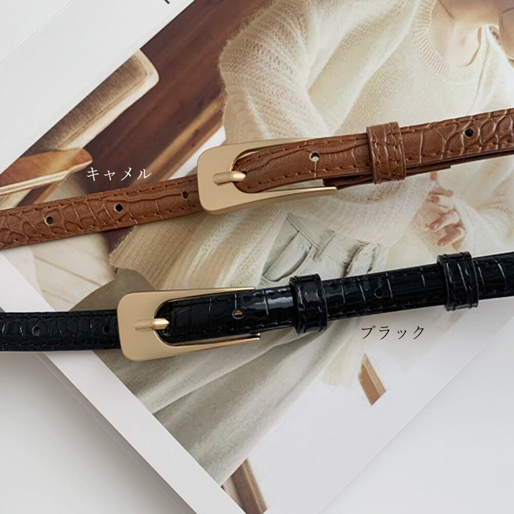 【日本倉庫即納】 クロコダイル柄ベルト レディース 細ベルト フェイクレザー ウエストベルト