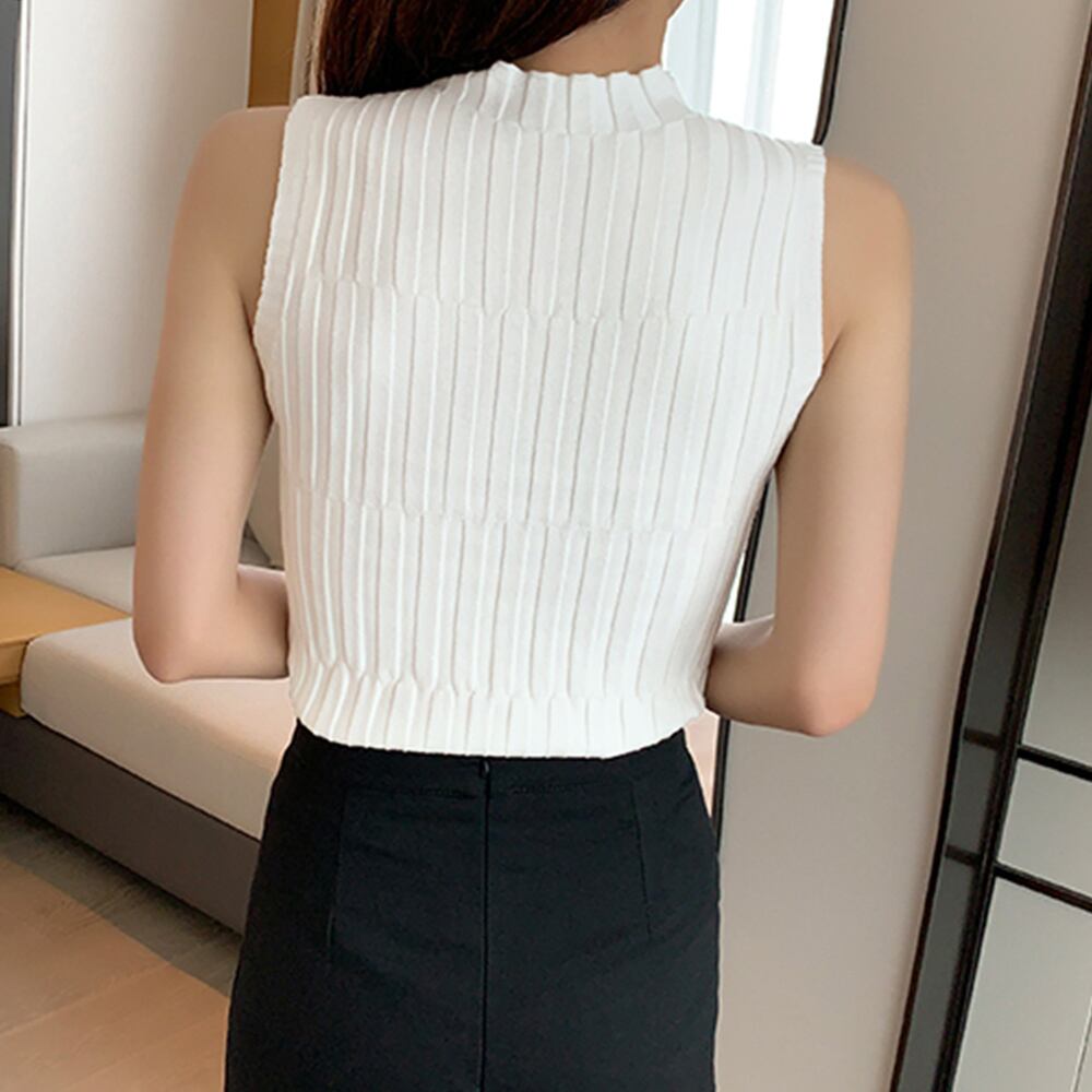 【日本倉庫即納】 タートルネック ニット トップス レディース ショート丈 タンクトップ