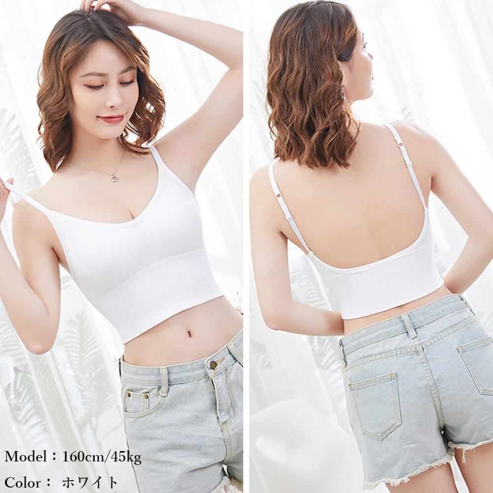 バストに負担を掛からないノンワイヤー仕様のカップ付きキャミソール背中は大胆に開いてお肌をセクシー魅せ、そのまま着てはもちろん、バックシャントップスに響かないのでインナーとして着てもOK肌触りの良いリブ生地を使用、さらっと着られる軽やかな着心地、お家でのリラックスタイムにもおススメの1枚素材:ナイロン80%+ポリウレタン20%カラー:ブラック/ダークグレー/ホワイト/ダークグリーン/オレンジ/マスタードサイズ:ワンサイズ着丈:約32-36cm(調節可能)トップバスト:約60-80cmアンダーバスト:約58-75cm補正機能:なしワイヤー:なしカップ:あり裏地:なし伸縮性:あり透け感:なし生産国:中国※すべて平置きサイズです(採寸方法違いより、多少の誤差がございますので、ご了承ください)。※海外輸入品のため、商品の細部仕様は予告なく変更になる場合がございます。予めご了承の上、ご注文お願い致します。