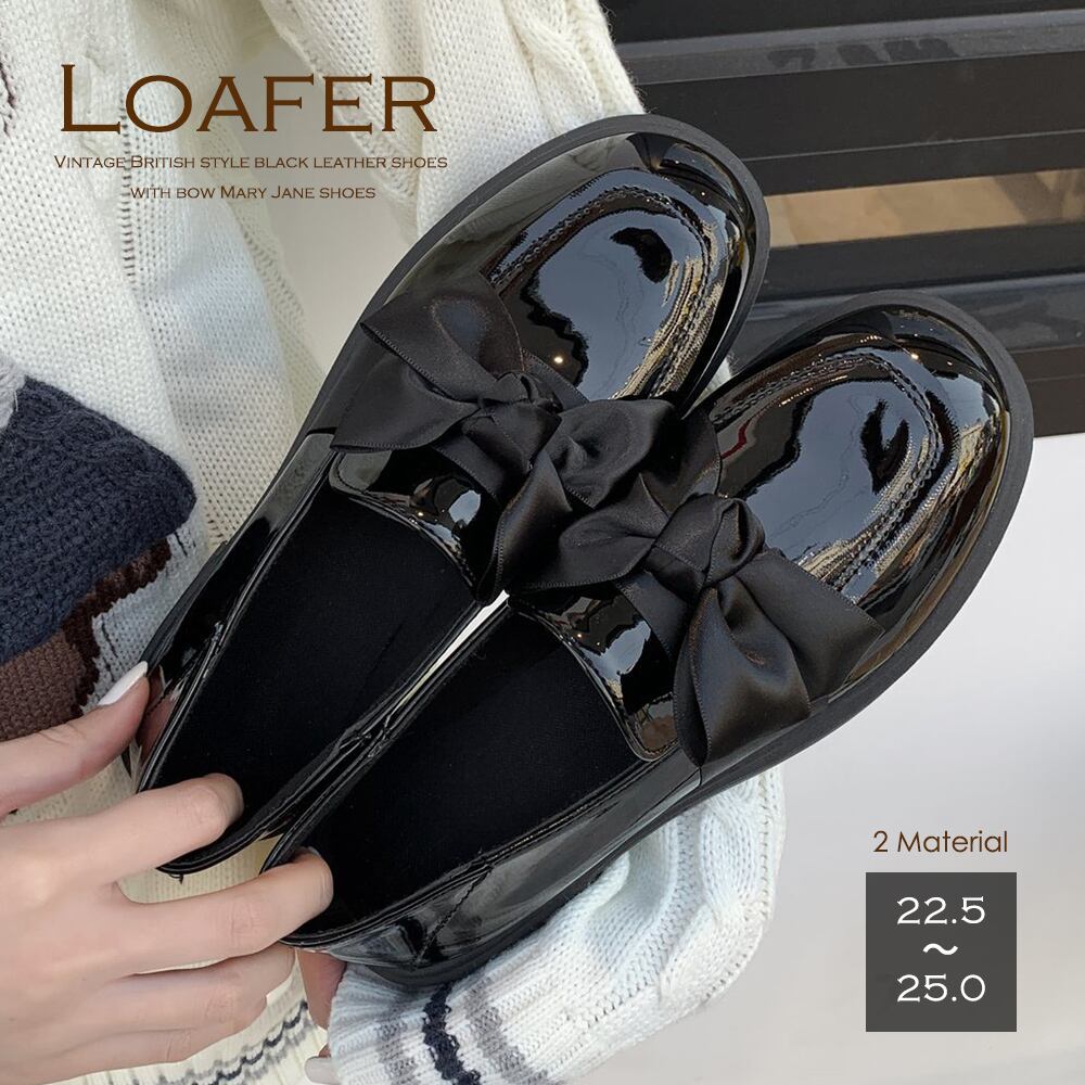 ローヒール 蝶?び リボン 通勤通学 カジュアル クラシック 四季 ドレスシューズ 疲れにくい 歩きやすい蝶?びサテンリボンタイプ付いているので、ソックスとの相性も抜群です。カジュアルコーデからフェミニンコーデまで、幅広いスタイルに合わせていただけます。可愛いデザインで幅広く取り入れやすい形で通年履けるおすすめアイテムです!甲素材:合成皮革底素材:合成底カラー:ブラックエナメル/ブラックスムースサイズ:22.5cm(225)/23.0cm(230)/23.5cm(235)/24.0cm(240)/24.5cm(245)/25.0(250)cm(カッコ内は靴底表記となります)[22.5]長さ:約22.5cm 幅:約11.0cm ヒール:約2.5cm[23.0]長さ:約23.0cm 幅:約11.2cm ヒール:約2.5cm[23.5]長さ:約23.5cm 幅:約11.4cm ヒール:約2.5cm[24.0]長さ:約24.0cm 幅:約11.6cm ヒール:約2.5cm[24.5]長さ:約24.5cm 幅:約11.8cm ヒール:約2.5cm[25.0]長さ:約25.0cm 幅:約12.0cm ヒール:約2.5cm重さ(両足):約490g-554g生産国:中国※すべて平置きサイズです(採寸方法違いより、多少の誤差がございますので、ご了承ください)。※商品は縫製上の細かいほつれ、汚れ、接着剤が残り、素材特有の臭いや接着剤等の臭いが残っている場合がございます。ご了承ください。※海外輸入品のため、商品の細部仕様は多少異なる場合がございます。予めご了承の上、ご注文お願い致します。