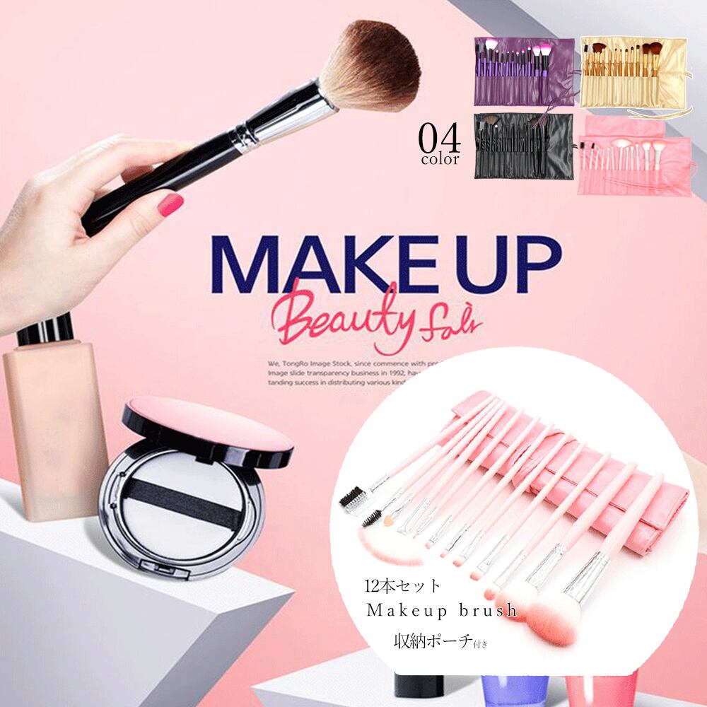 【日本倉庫即納】 メイクブラシ 12本セット 収納ポーチ付き