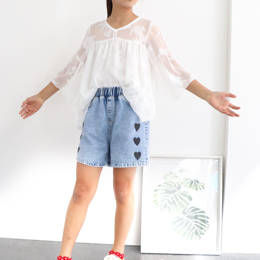 【日本倉庫即納】 女の子 ハート柄 デニム ショートパンツ