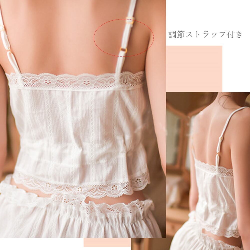 パジャマ セットアップ ショートパンツ レディース セクシー 可愛い 上下セット ショート丈 部屋着 2点セット 快適 夏 お洒落セクシーな花柄キャミソールとショートパンツのセットアップ肌触りのいい綿を含有しているので、通気性と吸水性も良く、快適な着用感裾に花柄レースのデザインで女性らしく可愛さアップ素材:綿85%+ポリエステル15%カラー:ホワイトサイズ:ワンサイズトップス:着丈(ストラップ付き):最大約43cm 身幅:約41cm 胸囲:約82cmボトムス:着丈:約30cm 股下:約7cm ウエスト(ゴム仕様):約48-98cm ヒップ:約96cm もも周り(ゴム仕様):約28-52cm裏地:なし伸縮性:なし透け感:若干あり生産国:中国※すべて平置きサイズです(採寸方法違いより、多少の誤差がございますので、ご了承ください)。※海外輸入品のため、商品の細部仕様は多少異なる場合がございます。予めご了承の上、ご注文お願い致します。