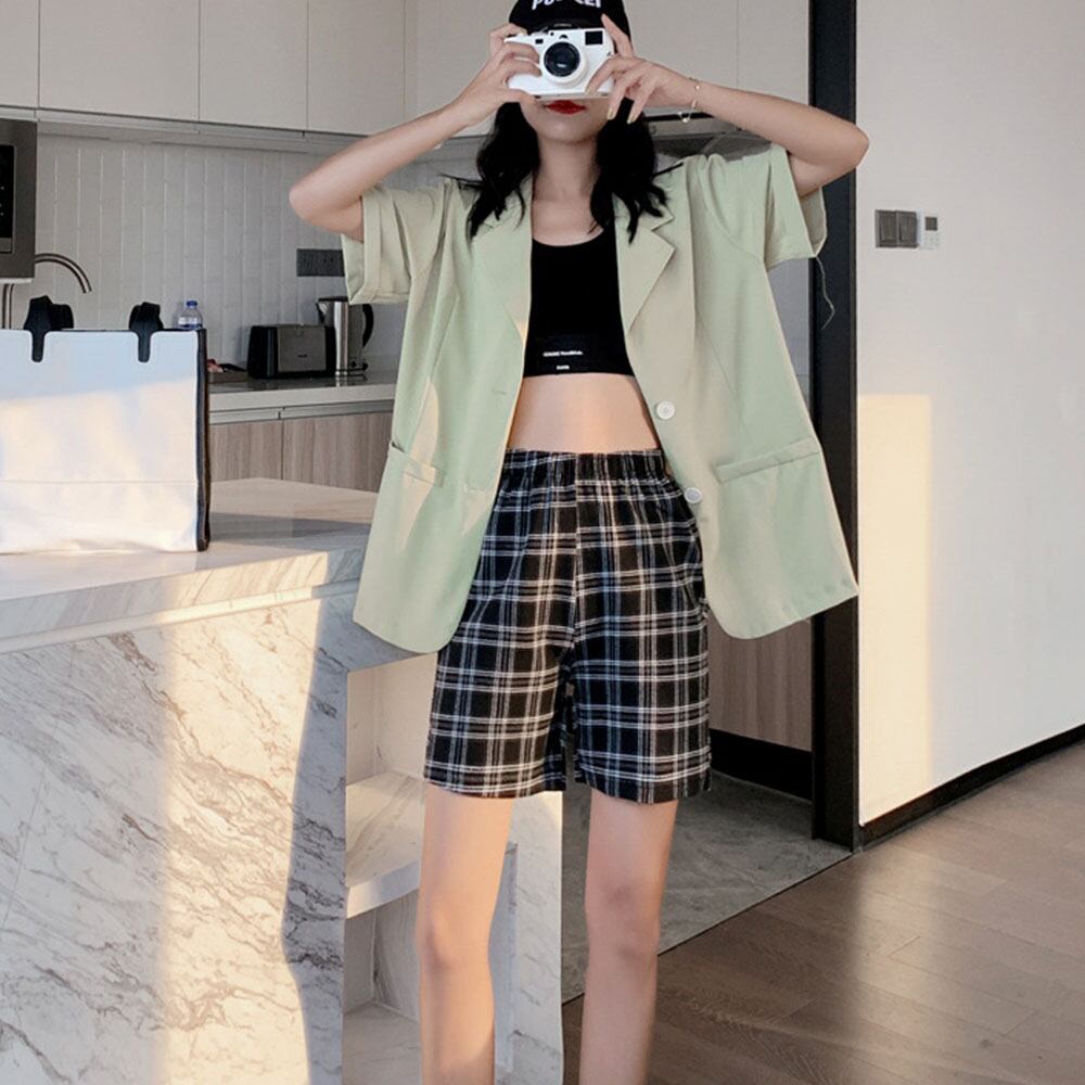 チェック柄パンツ カジュアル シンプル 短パン 夏 通勤 人気パンツ スウエットパンツ ハーフパンツきれいカジュアル、チェック柄ショートパンツスポーツにもデイリーにも部屋着にも着まわしOK肌当たりの良い柔らかい生地、伸縮性抜群のウエストゴムで快適な穿き心地素材:ポリエステル70%+綿30%カラー:チェック柄(大きめ)/チェック柄(小さめ)サイズ:ワンサイズ(M)着丈:約42cm 股下:約12cm ウエスト:約58-76cm(ゴム仕様) ヒップ:約40cm もも周り:約52cm裏地:なし伸縮性:なし透け感:なし生産国:中国※すべて平置きサイズです(採寸方法違いより、多少の誤差がございますので、ご了承ください)。※海外輸入品のため、商品の細部仕様は多少異なる場合がございます。予めご了承の上、ご注文お願い致します。
