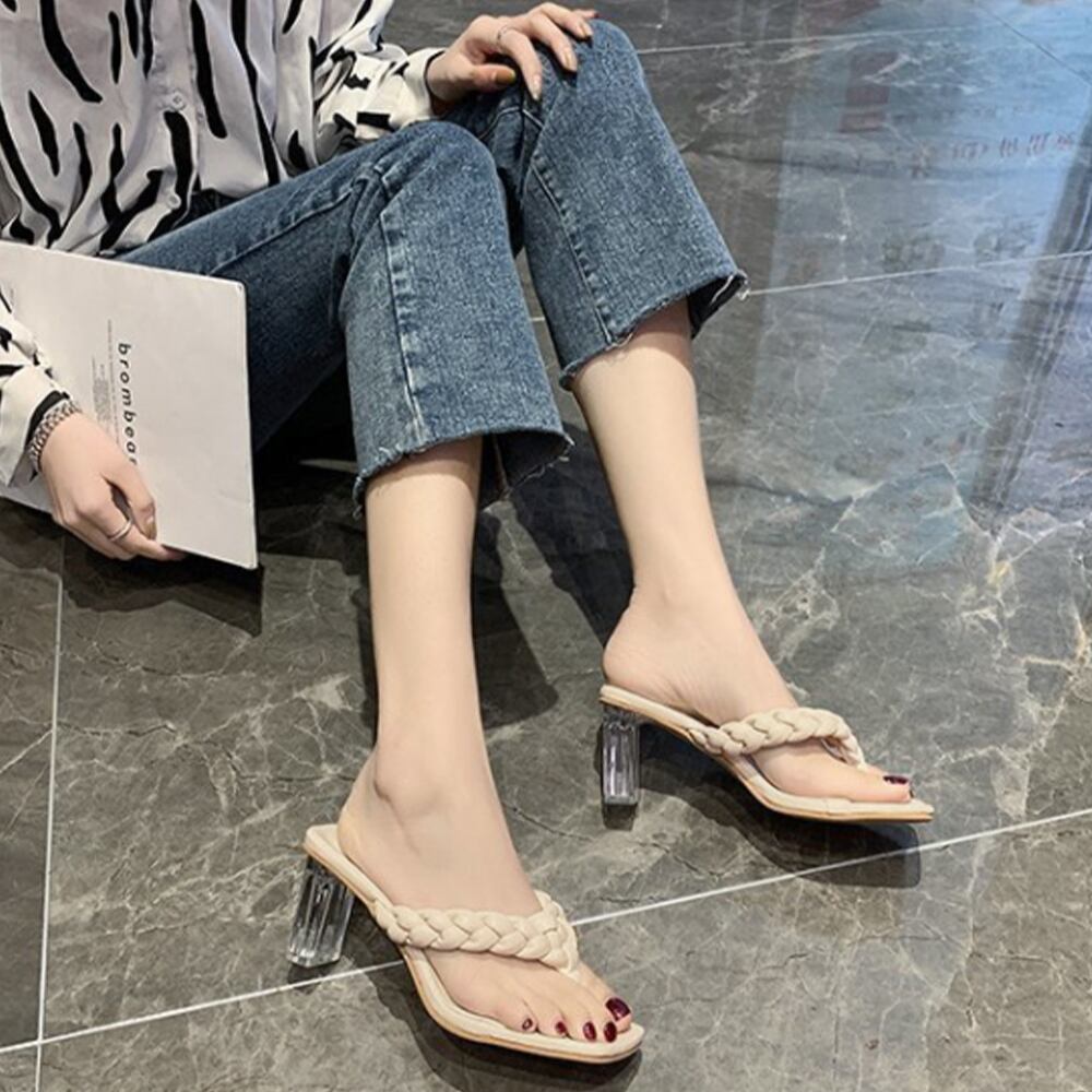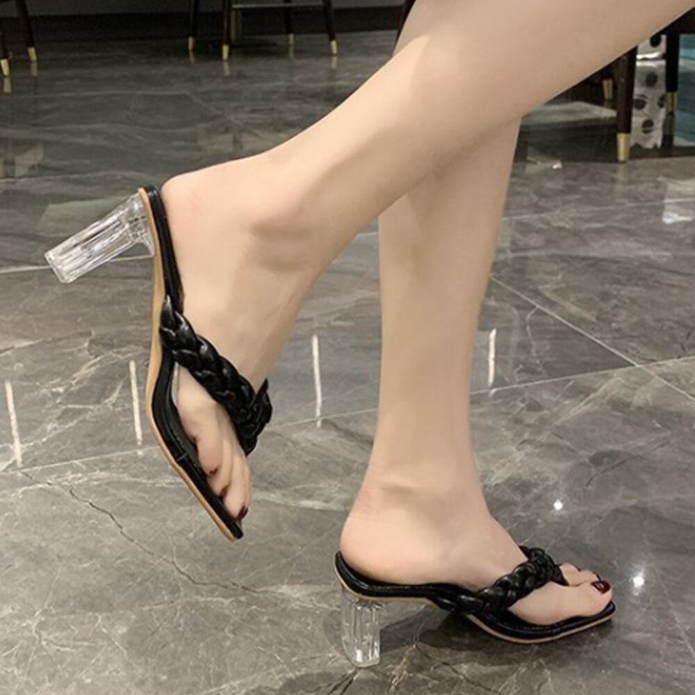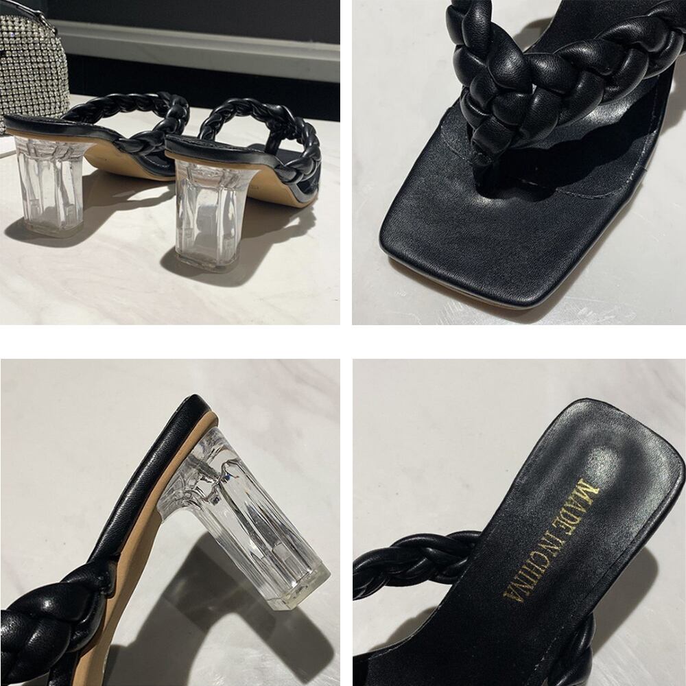 【日本倉庫即納】 クリアヒール サンダル 編み込みデザイン