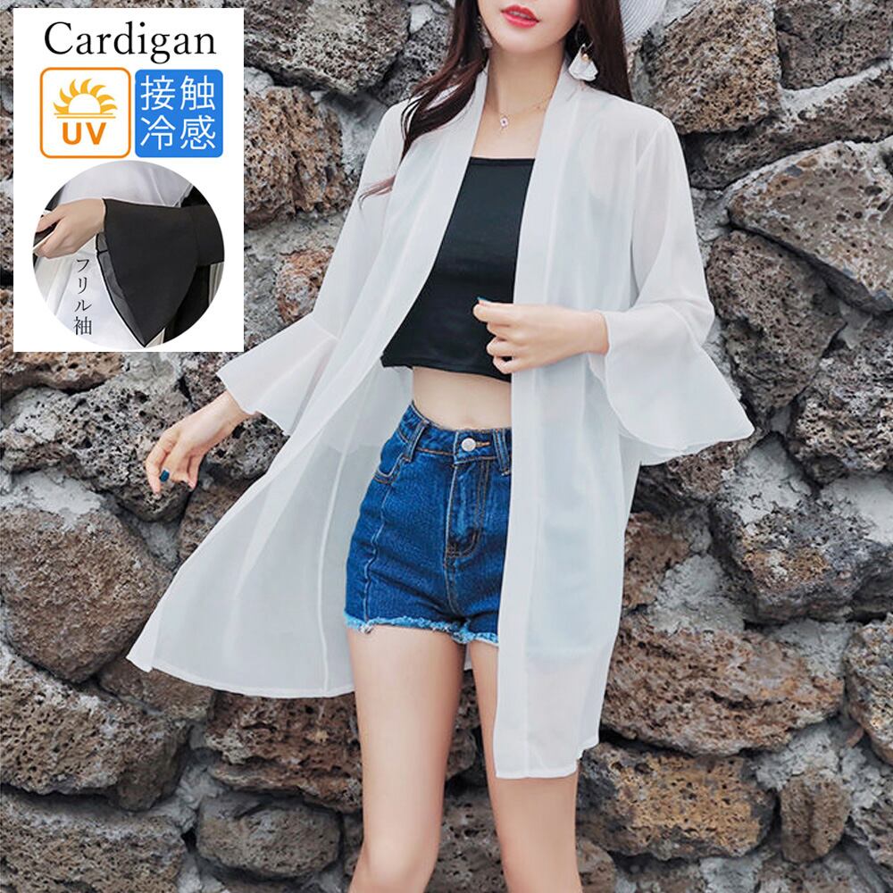 【日本倉庫即納】 カーディガン UVケア フリル袖 アウター