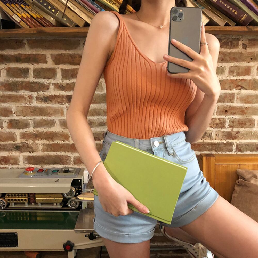 【日本倉庫即納】 vネック リブニット キャミソール 夏