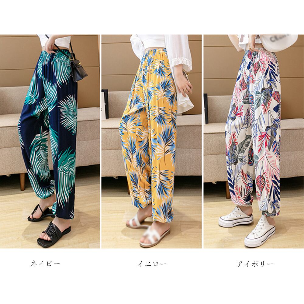 ロングパンツ ゆったり ルームウェア さらり レディース 涼しい 薄手 ウエストゴム ボトムズ鮮やか パンツ ハワイ風 春秋 軽い 爽やかゆったりしたシルエット、爽やかなロングパンツさらりと軽やか柔らかい生地で素肌に触れても優しいソフトな穿き心地、これからの季節にぴったりの一品ウエストゴム仕様でストレスフリーな履き心地、着脱も楽々素材:ポリエステル100%カラー:アイボリー/ネイビー/イエローサイズ:ワンサイズ着丈:約98cm 股下:約69cm ウエスト(ゴム仕様):約58-98cm ヒップ:約128cm もも周り:約68cm裏地:なし伸縮性:なし透け感:淡色のみ若干あり生産国:中国※すべて平置きサイズです(採寸方法違いより、多少の誤差がございますので、ご了承ください)。※海外輸入品のため、商品の細部仕様は多少異なる場合がございます。予めご了承の上、ご注文お願い致します。