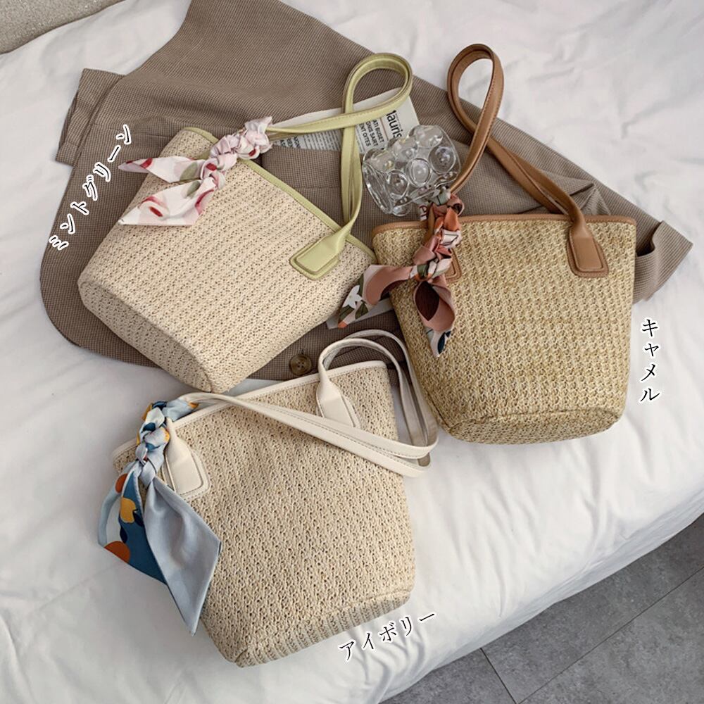 おしゃれ トートバッグ レディース 肩掛けカバン 大人かわいい 編みバッグ シンプル カジュアル 鞄 リボンペーパーかばん韓国 サマーバケツバッグ ビーチバッグ 夏海夏のコーディネートのアクセントになるスカーフ付きかごバッグです夏独特のリラックスした感じが着こなしをセンスよく仕上げてくれます軽く持ち運びやすいだけでなく、夏らしい素材のお洋服に合わせて使ってみると、かごハンドバッグの良さがグッと引き立ちます素材:ペーパー+ポリエステルカラー:アイボリー/キャメル/ミントグリーンサイズ:高さ:約23cm 底横幅:約17cm マチ:約10cm 持ち手:約65cm(調節不可、取り外し不可)重さ:約306g裏地:あり内ポケット:あり生産国:中国※すべて平置きサイズです(採寸方法違いより、多少の誤差がございますので、ご了承ください)。※海外輸入品のため、商品の細部仕様は多少異なる場合がございます。予めご了承の上、ご注文お願い致します。