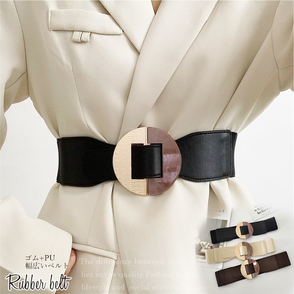 フェイクレザー 細見え おしゃれ サッシュベルト オールシーズン 韓国風 幅広い 異素材ゴムベルト 上品 ウエストマーク フィット感 ベルト幅広いゴムベルトでウエストをマークして大人な雰囲気を演出する後ろゴムのデザインでいつものコーデにプラスするだけで、シルエットを変化させ、フィット感がアップするシャツやワンピースなどのブラウジングにも相性が良く、コーデのポイントになる本体素材:合成皮革+ゴムバックル素材:合金+プラスチックカラー:ブラック/アイボリー/ブラウンサイズ:全長:約75cm幅:約6cmウエスト:約64-82cm(後ろゴム仕様)バックル直径:約8cm生産国:中国※すべて平置きサイズです(採寸方法違いより、多少の誤差がございますので、ご了承ください)。※海外輸入品のため、商品の細部仕様は多少異なる場合がございます。予めご了承の上、ご注文お願い致します。