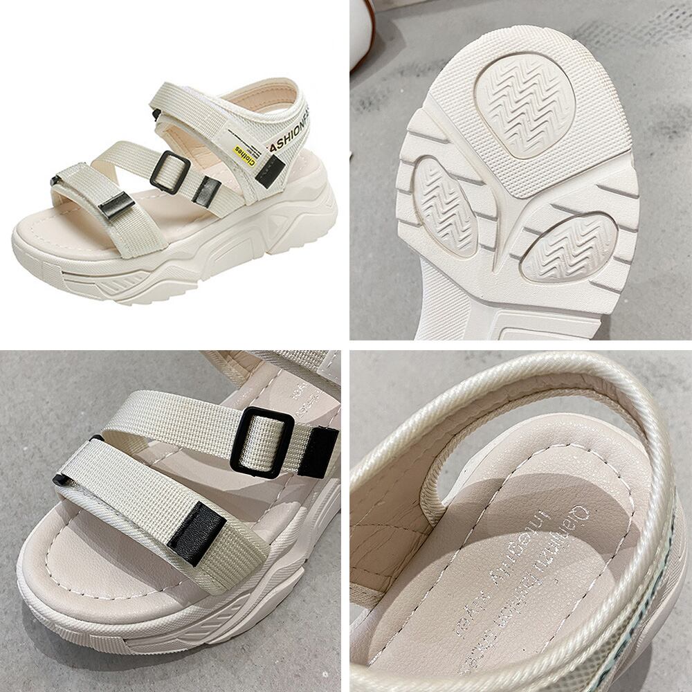レディース マジックテープ スニーカーサンダル ベルクロタイプ リゾートサンダル 歩きやすい 靴 夏 ストリートアウトドア 美脚靴 カジュアルサンダル 疲れない 靴今夏に大人気なダッドシューズデザインの旬の厚底サンダルベルト部分はマジックテープデザインで、調節もしやすく、足にぴったりとフィットする厚底ですがフラットになっているため、4.5cmの高さでも軽くて履きやすいレジャーはもちろん、タウンユースにも活躍してくれる甲素材:合成繊維底素材:合成底カラー:ブラック/ベージュサイズ:22.5cm(35)/23.0cm(36)/23.5cm(37)/24.0cm(38)/24.5cm(39)(カッコ内は靴底表記となります)[22.5]長さ:約22.5cm 幅:約10.5cm ヒール:約4.5cm[23.0]長さ:約23.0cm 幅:約10.5cm ヒール:約4.5cm[23.5]長さ:約23.5cm 幅:約10.5cm ヒール:約4.5cm[24.0]長さ:約24.0cm 幅:約10.5cm ヒール:約4.5cm[24.5]長さ:約24.5cm 幅:約10.5cm ヒール:約4.5cm重さ(両足):約700g-765g生産国:中国※すべて平置きサイズです(採寸方法違いより、多少の誤差がございますので、ご了承ください)。※商品は縫製上の細かいほつれ、汚れ、接着剤が残り、素材特有の臭いや接着剤等の臭いが残っている場合がございます。ご了承ください。※海外輸入品のため、商品の細部仕様は多少異なる場合がございます。予めご了承の上、ご注文お願い致します。
