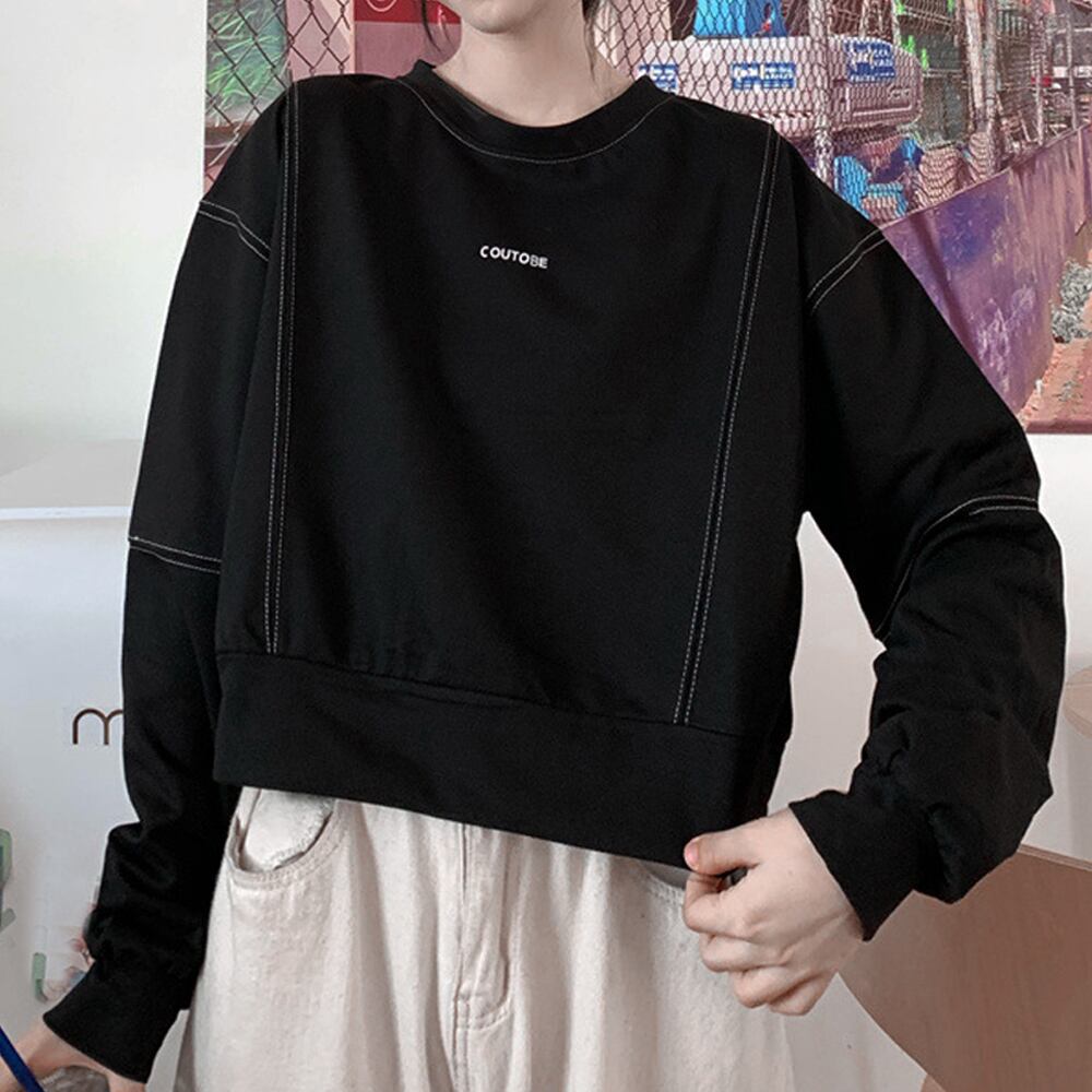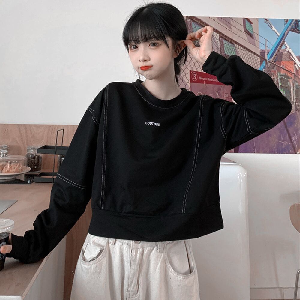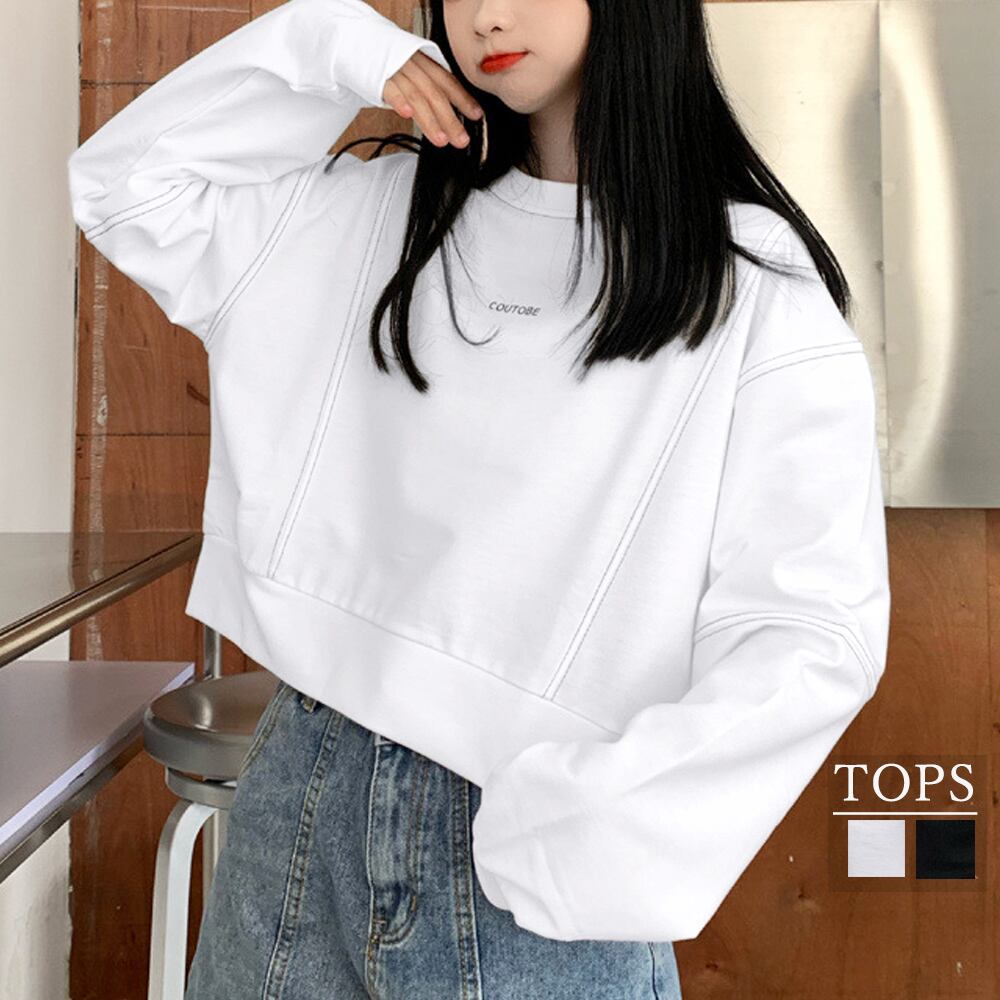 ショート丈 トップス 春秋冬 カットソー クルーネック Tシャツ 韓国風 シンプルドロップショルダー カジュアル 白 黒 プルオーバー 無地余計な装飾は抑えたベーシックデザインが魅力的なショート丈スウェットですシンプルなクルーネックでフェイスラインをキレイに見せますコンパクトな丈感で、どんなボトムスとも相性良くバランスがとりやすいアイテムです素材:ポリエステル70%+綿30%カラー:ホワイト/ブラックサイズ:ワンサイズ(XL)着丈:約47cm 肩幅:約52cm 袖丈:約56cm ゆき:約82cm 身幅:約53cm 胸囲:約106cm裏地:なし伸縮性:なし透け感:ホワイトのみややあり生産国:中国※すべて平置きサイズです(採寸方法違いより、多少の誤差がございますので、ご了承ください)。※海外輸入品のため、商品の細部仕様は多少異なる場合がございます。予めご了承の上、ご注文お願い致します。