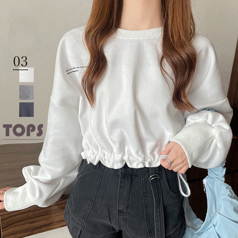 カットソー 春秋冬 ショート丈 Tシャツ クルーネック 韓国ファッション カジュアルドロップショルダー 部屋着 ゆったり プルオーバー 通学可愛いクルーネックスウェットトレーナードロップショルダーデザインで女性らしさをプラスショート丈でパンツにもスカートにも合わせやすい素材:ポリエステル70%+綿30%カラー:ホワイト/グレー/ダークグレーサイズ:ワンサイズ(L)着丈:約42cm 肩幅:約66cm 袖丈:約48cm ゆき:約81cm 身幅:約64cm 胸囲:約128cm裏地:なし伸縮性:なし透け感:ホワイトのみややあり生産国:中国※すべて平置きサイズです(採寸方法違いより、多少の誤差がございますので、ご了承ください)。※海外輸入品のため、商品の細部仕様は多少異なる場合がございます。予めご了承の上、ご注文お願い致します。