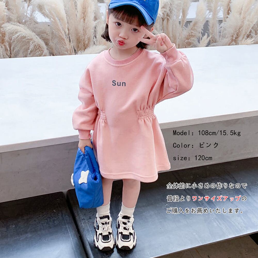 キッズ 英字柄 Tシャツワンピース 子供服 女の子 新作 おしゃれ 可愛い トップス 薄手 こどもジュニア 韓国風 姉妹 双子 お揃い ガールズ ギャザー裾にかけてフレアする人気のAラインワンピース。ウエスト両サイド部分にギャザーが入ったデザインがおしゃれ度アップ♪一枚で着るのはもちろん、レギンスなどのボトムスとも相性抜群!素材:綿65%+ポリエステル35%カラー:グレー/ピンク/ライトイエローサイズ:110/120/130/140※詳細は下記の「サイズ」を必ずご参考にしてご購入ください。※普段よりワンサイズアップをおススメ致します。[110]総丈:約51cm 肩幅:約31cm 袖丈:約32cm 身幅:約34cm ウエスト:約56cm[120]総丈:約54cm 肩幅:約33cm 袖丈:約34cm 身幅:約36cm ウエスト:約58cm[130]総丈:約57cm 肩幅:約35cm 袖丈:約36cm 身幅:約38cm ウエスト:約60cm[140]総丈:約60cm 肩幅:約37cm 袖丈:約38cm 身幅:約40cm ウエスト:約62cm裏地:なし伸縮性:なし透け感:なし生産国:中国※すべて平置きサイズです(採寸方法違いより、多少の誤差がございますので、ご了承ください)。※海外輸入品のため、商品の細部仕様は多少異なる場合がございます。予めご了承の上、ご注文お願い致します。