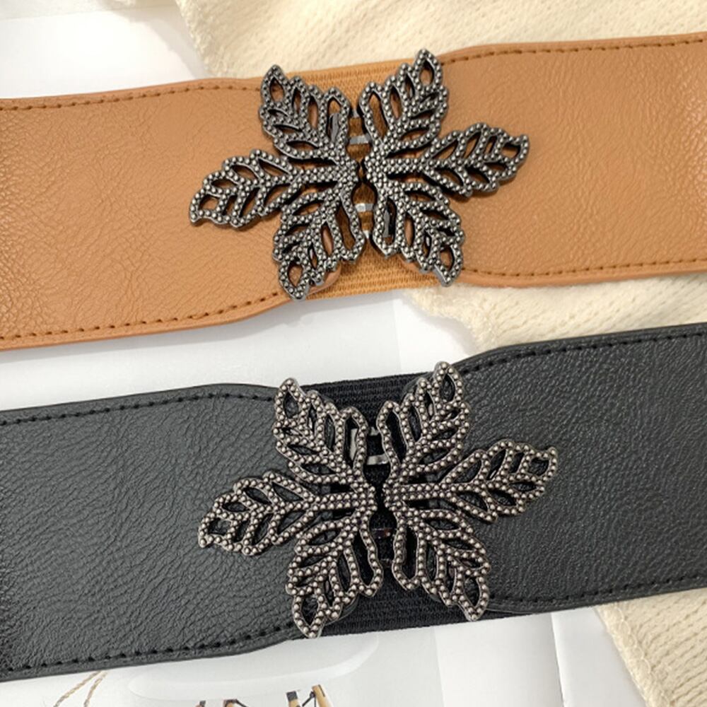 【日本倉庫即納】 バックルベルト レディース 葉モチーフ