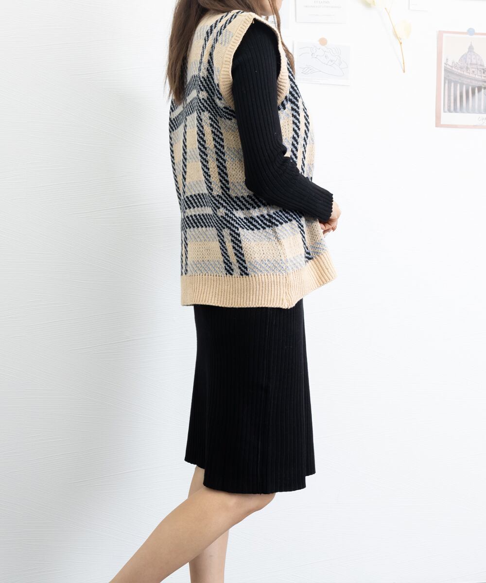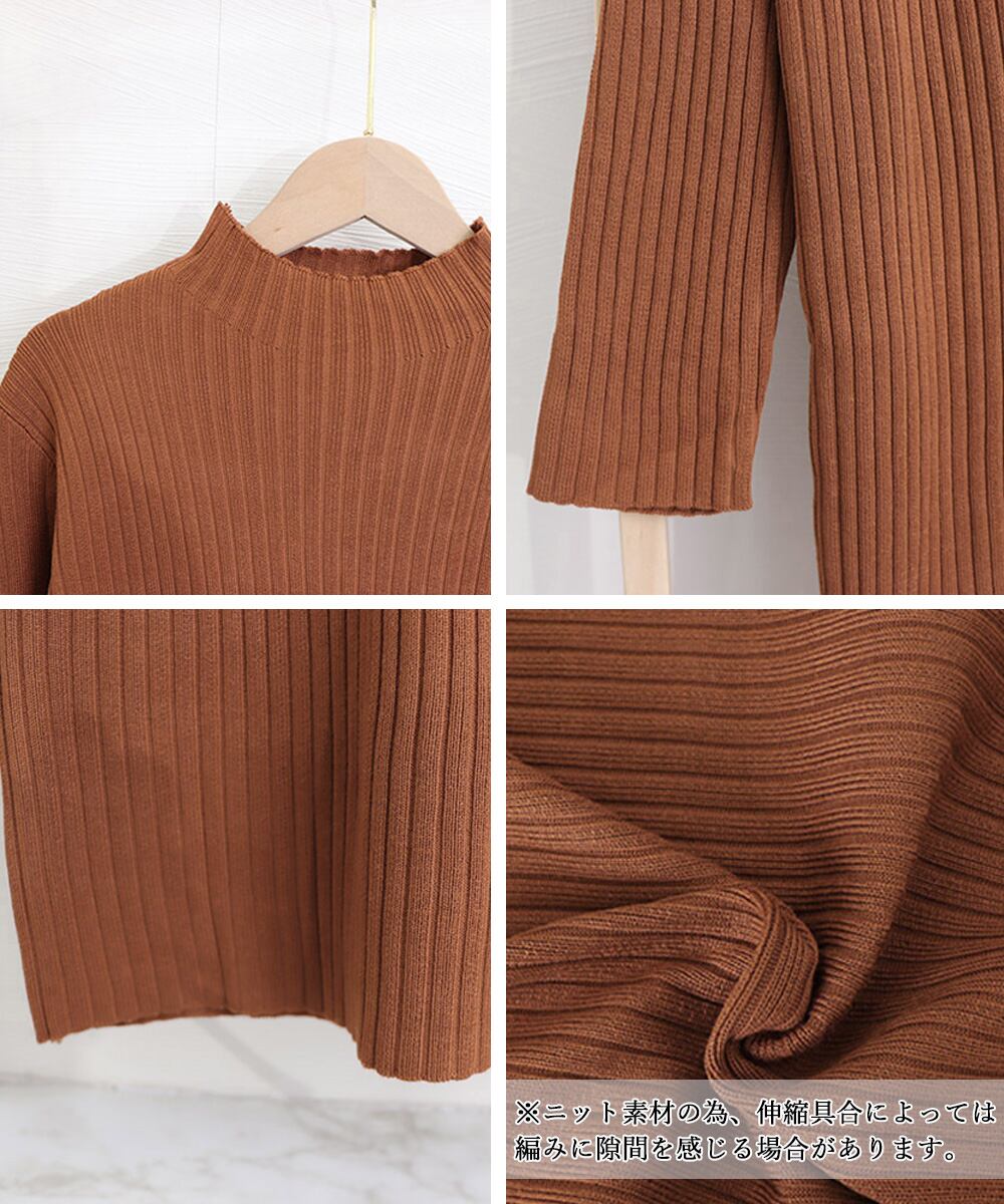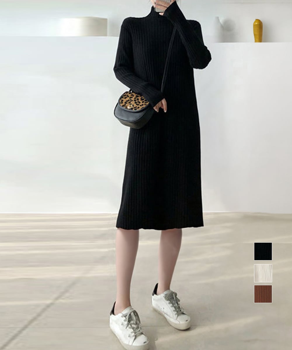 【日本倉庫即納】 リブニット ワンピース ハイネック 無地