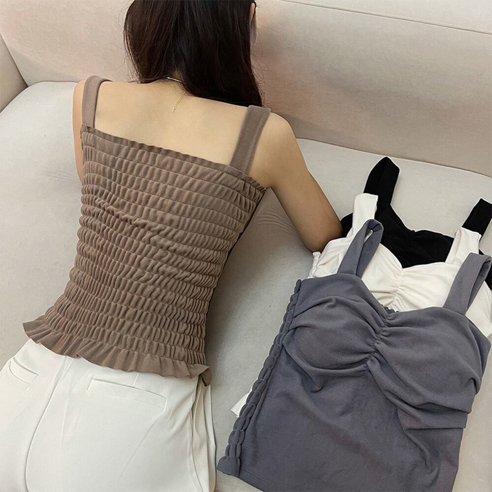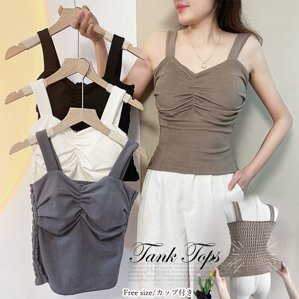 【日本倉庫即納】 タンクトップ カップ付き ギャザー 春