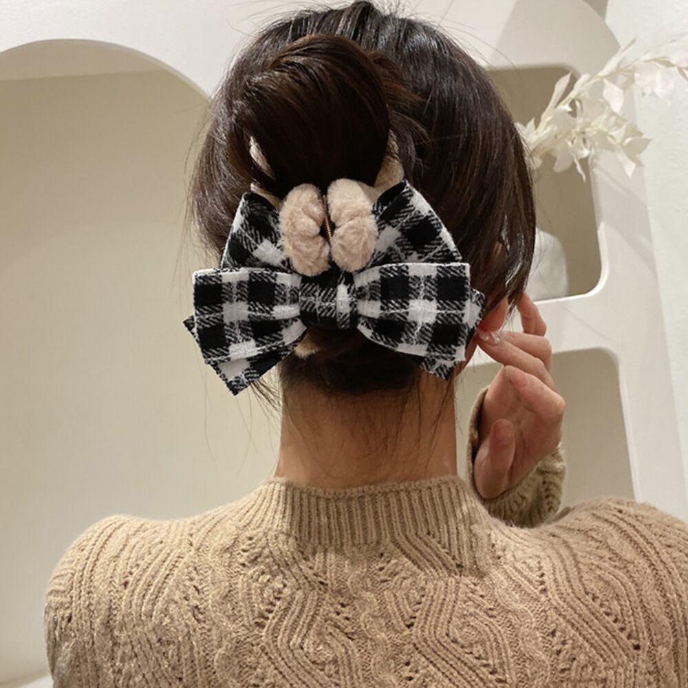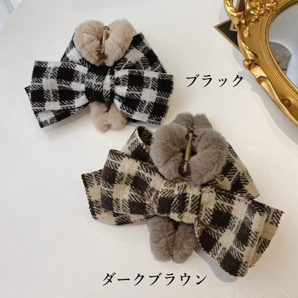 チェック柄 ヘアアクセサリー ふわふわ 大人可愛い 髪飾り ヘアアレンジ 結婚式 パーティ 髪留め エレガント 贈り物 春おしゃれプレゼント モコモコヘアアクセ 韓国ファッション黒秋冬にピッタリのふわふわヘアクリップ。爽やかなチェック柄がコーディネートのワンポイントにぴったり!ふわふわのボリューム感とリボン付きでキュートなアクセントをプラス♪どんなコーデにも相性良く、幅広く活躍してくれるアイテム。素材:合成樹脂+ポリエステル+フェイクファーカラー:ブラック/ダークブラウンリボン幅:約13cmリボン高さ(垂れた部分を含む):約9cmクリップ挟み幅:約4cmクリップ横幅:約12cm生産国:中国※包装に関しての注意点:こちらの商品は激 安で販売しているため、化粧箱は付いていませんが、商品に傷付かないよう簡易包装で発送とさせていただきます。※海外輸入品のため、商品の細部仕様は多少異なる場合がございます。予めご了承の上、ご注文お願い致します。