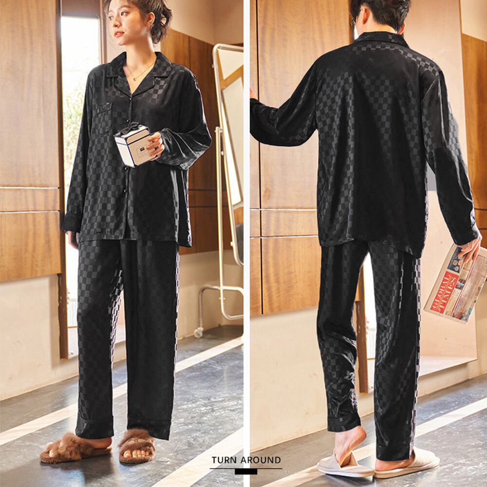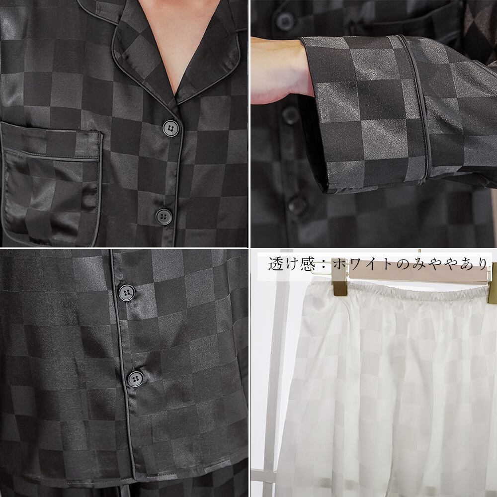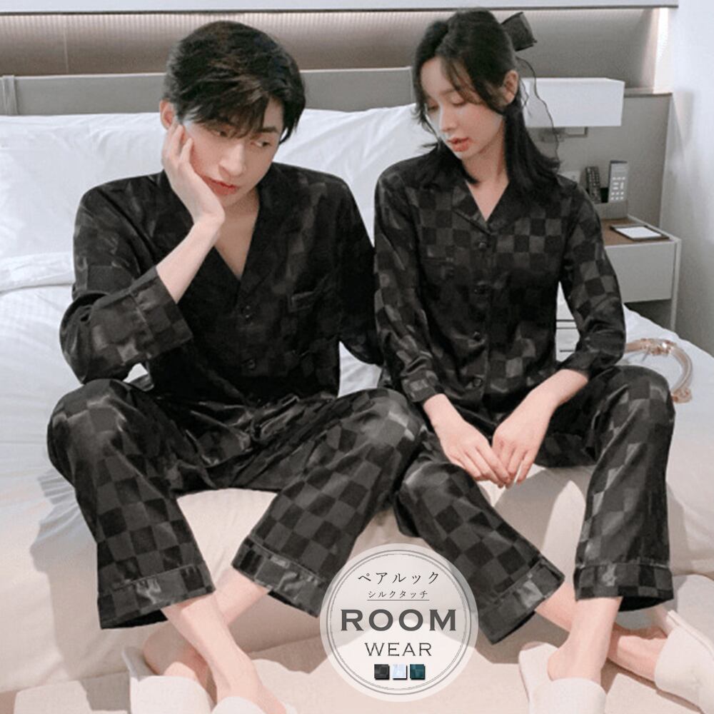 長袖 部屋着 ペアルック カップル 夫婦 お揃い パジャマ シルクタッチ ゆったり 上下セットアップ 寝巻きレディース男女兼用 パジャマ ナイトウェアメンズ リラックス 部屋着おうち時間を共にしたい快適でおしゃれなルームウェアセットアップ薄手でさらりとした肌触りで気持ちがいい男女兼用なので、大好きな彼とお揃いで持ってはいかが素材:ポリエステル100%タイプ:レディース/メンズカラー:ホワイト/ブラック/ブルーグリーンサイズ:ワンサイズレディース:ワンサイズ(XL)トップス:着丈:約62cm 肩幅:約40cm 袖丈:約52cm ゆき:約72cm 身幅:約54cm 胸囲:約108cmボトムス:着丈:約96cm 股下:約65cm ウエスト:約58-104cm(ゴム仕様) ヒップ:約110cm もも周り:約61cmメンズ:ワンサイズ(XXL)トップス:着丈:約72cm 肩幅:約42cm 袖丈:約56cm ゆき:約77cm 身幅:約58cm 胸囲:約116cmボトムス:着丈:約99cm 股下:約65cm ウエスト:約62-108cm(ゴム仕様) ヒップ:約115cm もも周り:約64cm裏地:なし伸縮性:なし透け感:ホワイトのみややあり生産国:中国※すべて平置きサイズです(採寸方法違いより、多少の誤差がございますので、ご了承ください)。※海外輸入品のため、商品の細部仕様は多少異なる場合がございます。予めご了承の上、ご注文お願い致します。