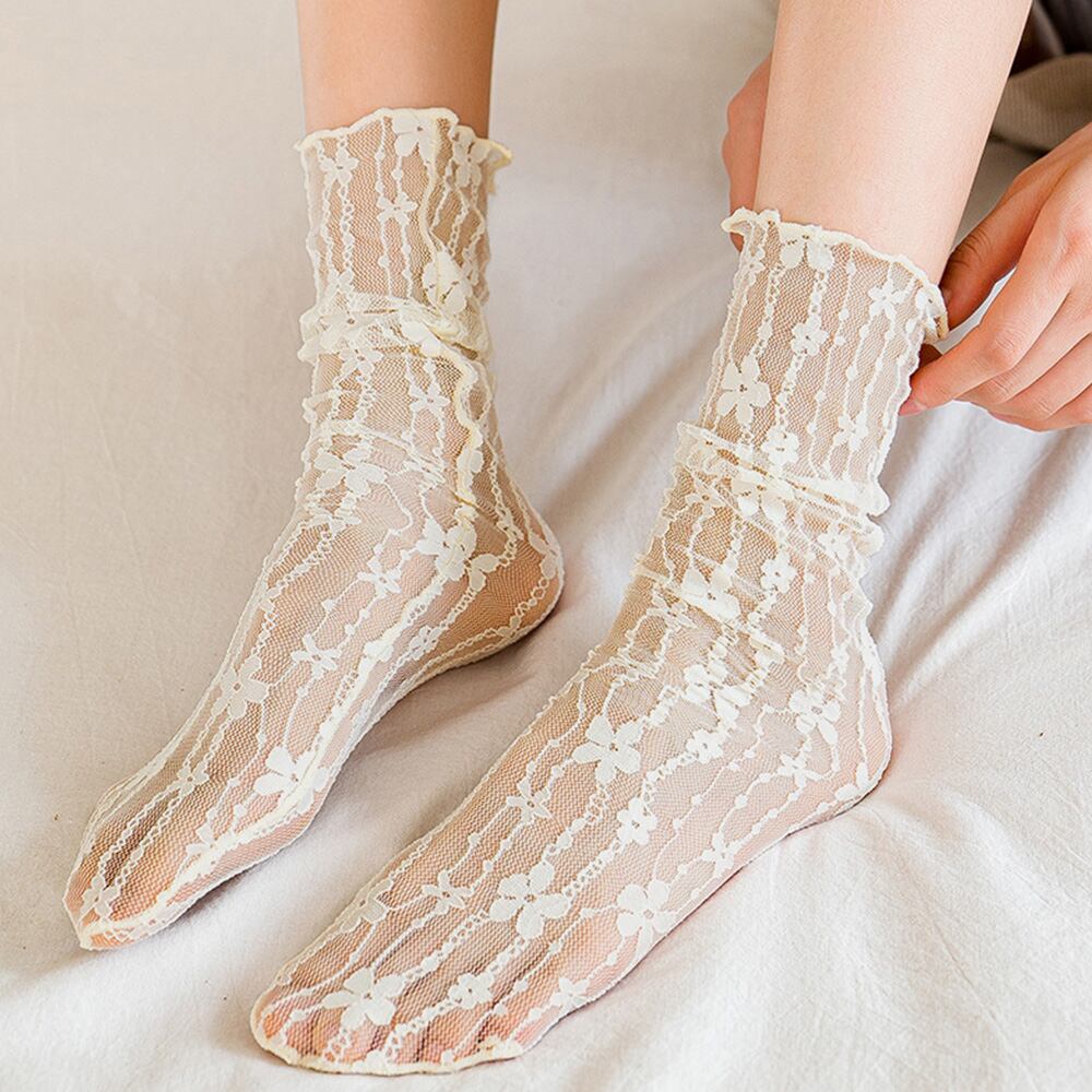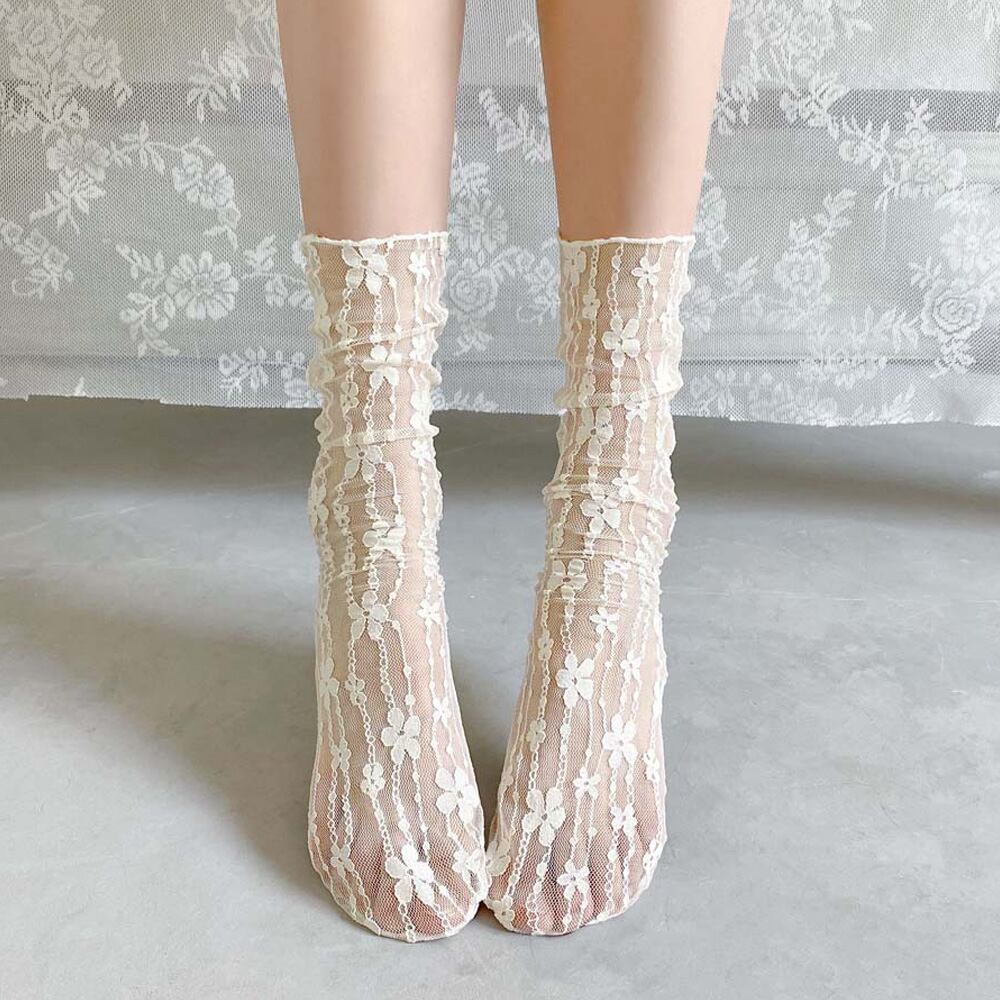 【日本倉庫即納】 シースルーソックス 花柄レース 女性用