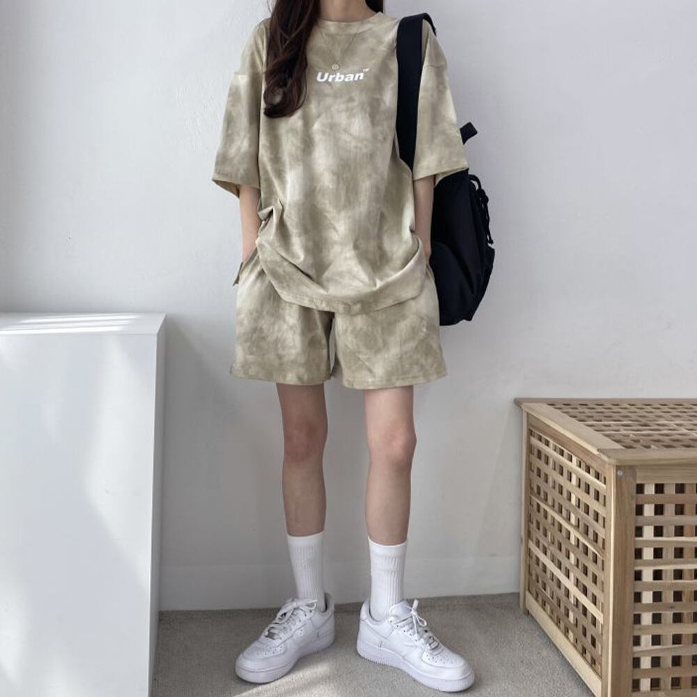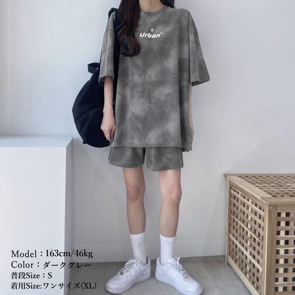 半袖 タイダイ柄 ショートパンツ Tシャツ 上下セット 薄手 可愛い おしゃれカジュアルウェア ルームウェアセット 韓国風半袖Tシャツとハーフパンツのセットアップです。家の中だけでなく、外出時に着ても違和感のないデザインです。スポーツジム、ジョギング、旅行時、部屋着など様々な場面で活用OKです。トップス素材:ポリエステル70%+綿30%ボトムス素材:ポリエステル70%+綿30%カラー:ダークグレー/ベージュ/ブルー/グリーンサイズ:ワンサイズ(XL)トップス:着丈:約70cm 肩幅:約52cm 袖丈:約18cm ゆき:約44cm 身幅:約56cm 胸囲:約112cmボトムス:着丈:約44cm 股下:約14cm ウエスト(ゴム仕様):約56-112cm ヒップ:約110cm もも周り:約60cm裏地:なし伸縮性:なし透け感:なし生産国:中国※すべて平置きサイズです(採寸方法違いより、多少の誤差がございますので、ご了承ください)。※海外輸入品のため、商品の細部仕様は多少異なる場合がございます。予めご了承の上、ご注文お願い致します。