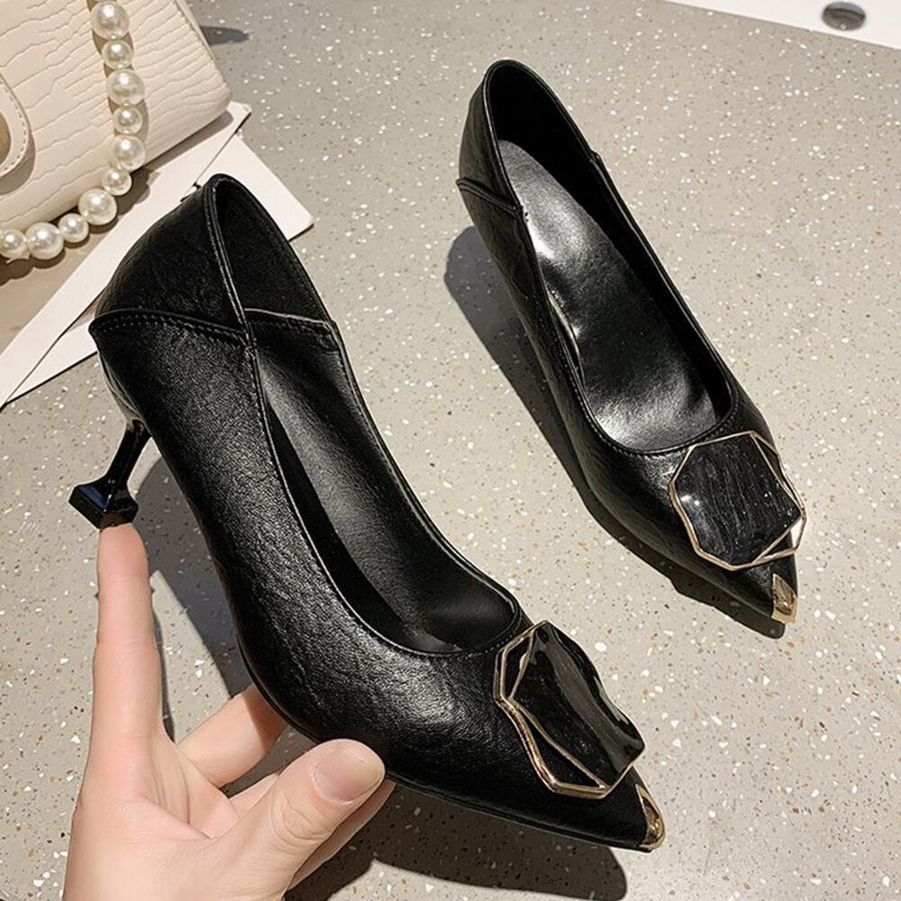 【日本倉庫即納】 パンプス ポインテッドトゥ金属飾り 美脚