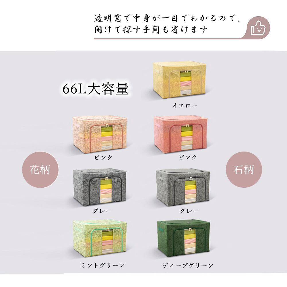 おしゃれ 折り畳み 押入れ 収納ボックス 大容量 洋服 整理袋 衣替え 防塵 枕 収納 コンパクト 通気性 透明窓 収納おもちゃ収納重ねる 小物収納 整理整頓 浴室収納バスタオル衣替えシーズンやクロゼット整理整頓に大活躍する衣類布団収納袋見える窓付きで、衣類が探しやすい使わない時はコンパクトに畳めますので、場所を取りません外側素材:コットン+リネン混紡内側素材:PEコーテイングタイプ:石柄/花柄カラー:グレー/ピンク/イエロー/ディーブグリーン/ミントグリーン商品仕様:四角形/容量66Lサイズ:幅:約50cm 奥行:約38cm 高さ:約32cm重さ:約900g裏地:なし内ポケット:なし生産国:中国※すべて平置きサイズです(採寸方法違いより、多少の誤差がございますので、ご了承ください)。※海外輸入品のため、商品の細部仕様は多少異なる場合がございます。予めご了承の上、ご注文お願い致します。