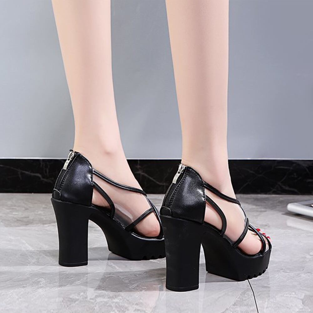 厚底サンダル 太ヒール 履きやすい 夏シューズ 韓国 サマーサンダル セクシー 美脚 脚長 大人人気 ハイヒール靴シースルーサンダル オシャレサンダル靴 オフィスカジュアル今季GETするなら間違いなくクリア素材のサンダルがおすすめ厚底+ハイヒールで抜群の美脚を演出し、太めのヒールで安定感もバッチリ長時間履いていても痛くなりにくいのも嬉しいポイント透け感のあるPVC素材から覗く素肌感で上品な大人っぽいな雰囲気を漂うお天気のいい日のお出かけ前に、足元に大人可愛さをプラスして夏らしいスタイリングを楽しみたい1足甲素材:PVC+合成皮革底素材:合成底カラー:ブラック/アイボリーサイズ:22.5cm(35)/23.0cm(36)/23.5cm(37)/24.0cm(38)/24.5cm(39)(カッコ内は靴底表記となります)[22.5]長さ:約22.5cm 幅:約7.0cm ヒール:約10cm[23.0]長さ:約23.0cm 幅:約7.2cm ヒール:約10cm[23.5]長さ:約23.5cm 幅:約7.4cm ヒール:約10cm[24.0]長さ:約24.0cm 幅:約7.6cm ヒール:約10cm[24.5]長さ:約24.5cm 幅:約8.0cm ヒール:約10cm重さ(両足):約504g-573g生産国:中国※すべて平置きサイズです(採寸方法違いより、多少の誤差がございますので、ご了承ください)。※海外輸入品のため、商品の細部仕様は多少異なる場合がございます。予めご了承の上、ご注文お願い致します。