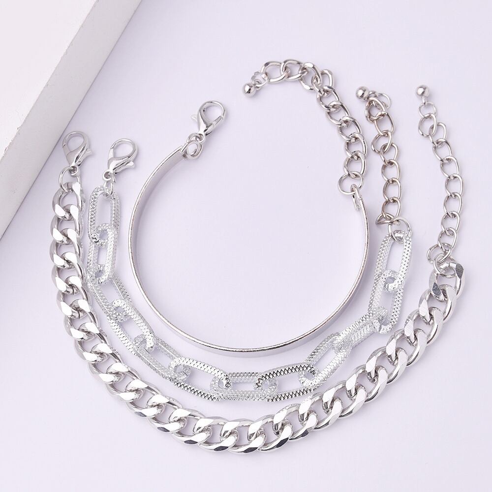 韓国ファッション 重ね付け アクセサリー レディース 3点セット ファッション小物 可愛い ゴールド アジャスター付き大ぶり チェーン ジュエリー 個性的 組み合わせ 単品大ぶりながらも抜け感がありデザインのチェーンブレスレットが2本とバングルが1本で3点セットです程良いボリューム感で幅広い着こなしにマッチしてくれます組み合わせても別々にも自分好みにアレンジできます、スタイリングのアクセントとして活躍いただけます素材:合金カラー:ゴールド/シルバー手首回り(A/B/C)A約15-19cm(調節可能)/アジャスター:約4cmB:約15-20cm(調節可能)/アジャスター:約5cmC:約15-20cm(調節可能)/アジャスター:約5cm生産国:中国※包装に関しての注意点:こちらの商品は激 安で販売しているため、化粧箱は付いていませんが、商品に傷付かないよう簡易包装で発送とさせていただきます。※海外輸入品のため、商品の細部仕様は多少異なる場合がございます。予めご了承の上、ご注文お願い致します。