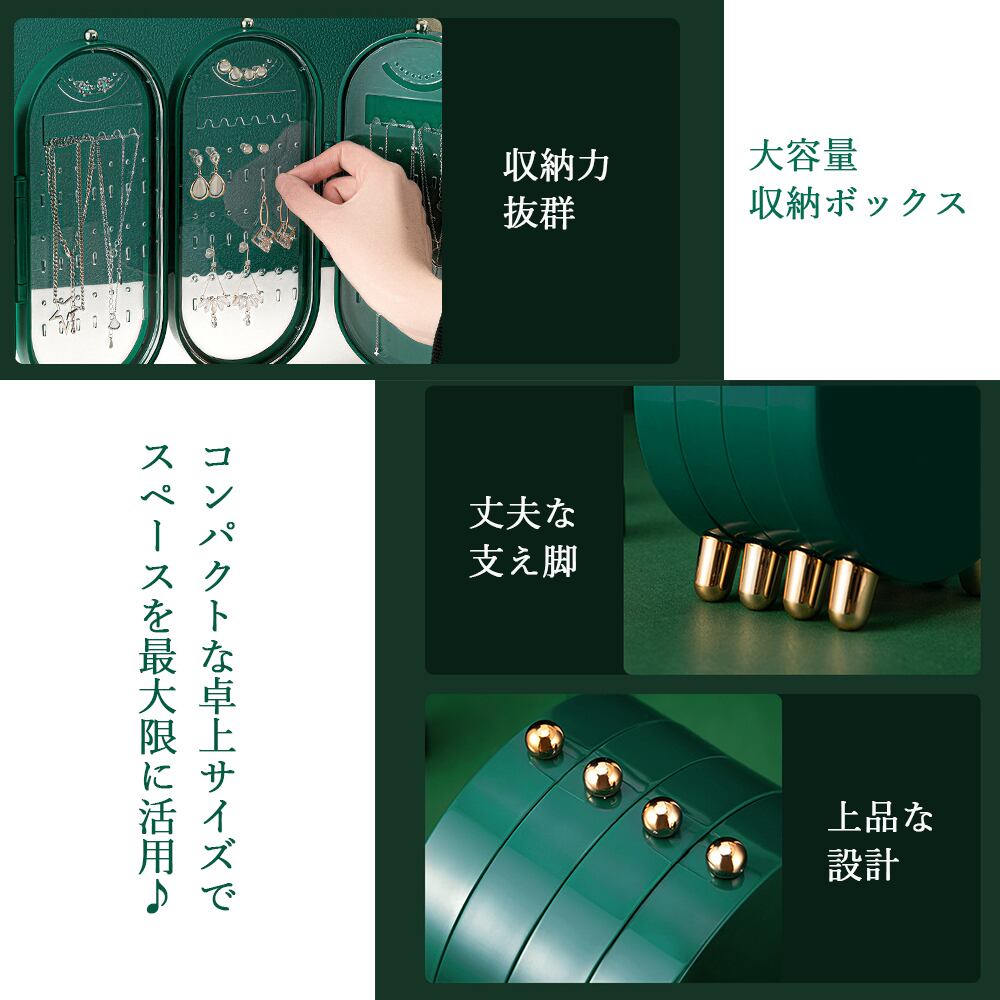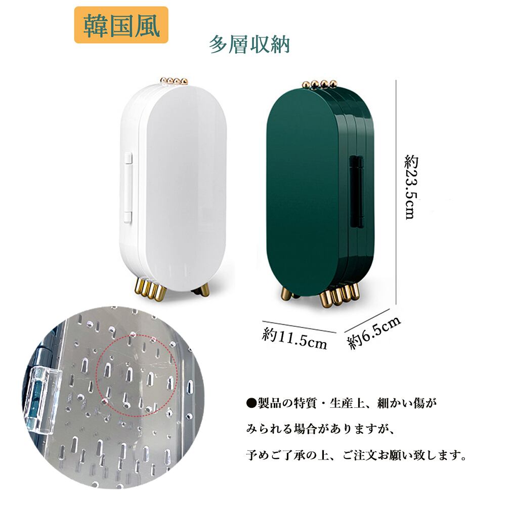 三列式 ジュエリーケース 鏡付き 大容量 アクセサリー 収納ボックス 多層 携帯用宝石箱 イヤリング ネックレス ピアスコンパクト 可愛い 韓国風 収納ケース プレゼント 贈り物ピアスやイヤリング、ネックレスなどすっきり片付けられる折りたたみアクセサリーケースコンパクトな卓上サイズでスペースを最大限に活用ミラーを見ながら、ファッションやメイクに合わせてアクセサリーを選べるご自宅での利用だけでなく、旅行の携帯用にも便利素材:ABS樹脂+ガラスカラー:ホワイト/ダークグリーンサイズ:幅:約11.5cm 奥行:約6.5cm 高さ:約23.5m重さ:約386g生産国:中国※すべて平置きサイズです(採寸方法違いより、多少の誤差がございますので、ご了承ください)。※海外輸入品のため、商品の細部仕様は多少異なる場合がございます。予めご了承の上、ご注文お願い致します。